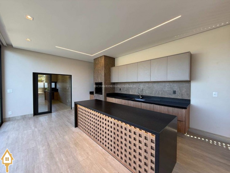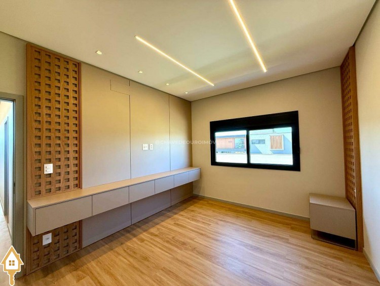 Ao entrar, você é recebido por uma sala de estar/TV com pé direito duplo de 6,5 metros e um mezanino. A sala de jantar integrada à varanda gourmet e a cozinha independente, com lavanderia e banheiro para funcionários, garantem praticidade. No andar superior, há quatro suítes, incluindo uma master com closet, além de um escritório que pode ser convertido em uma quinta suíte.
