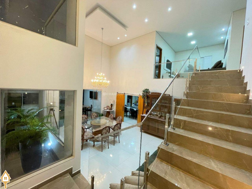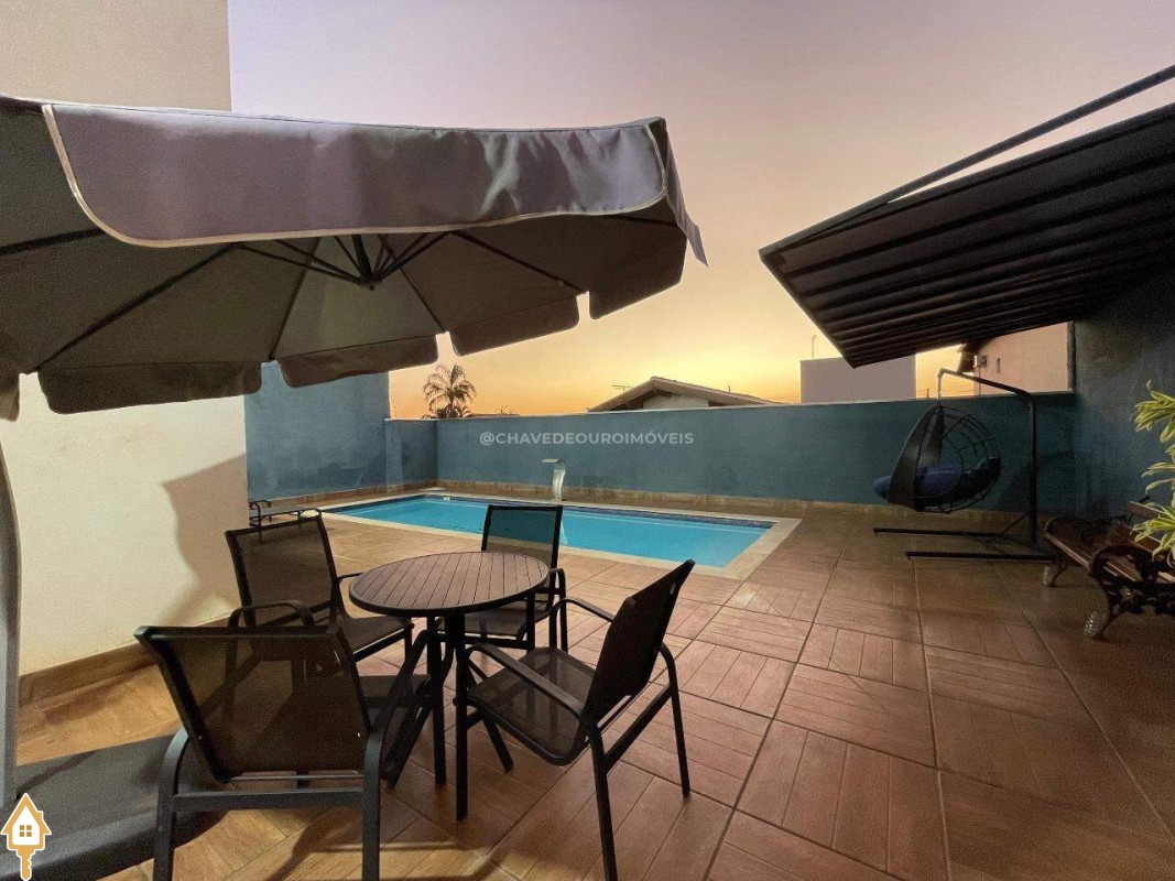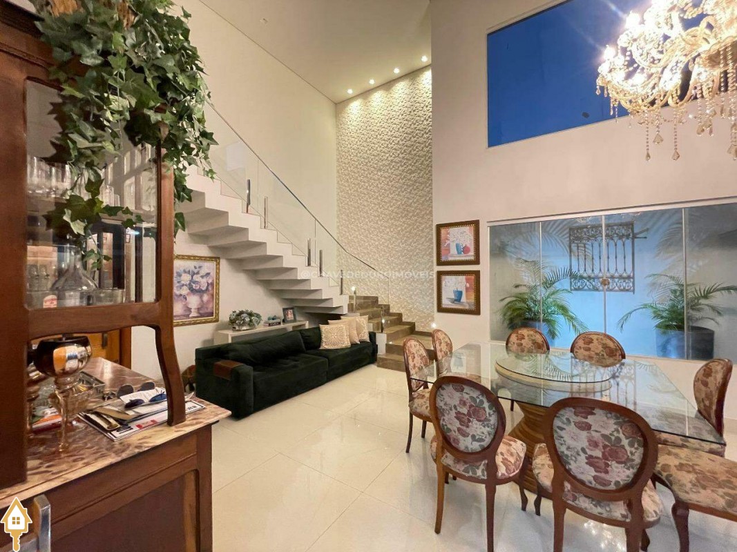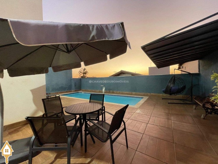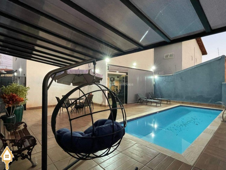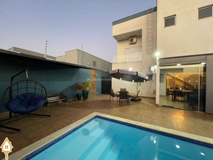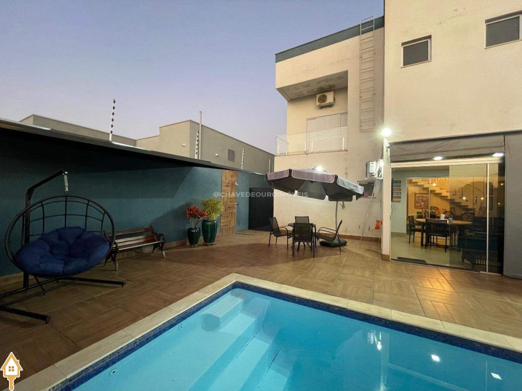 Casa a venda na cidade de Uberaba MG no bairro Jardim São Bento, o seu primeiro piso e composto de sala para três ambientes integrados e com pé direito duplo, com lindo jardim de inverno integrando os ambientes de cozinha com a varanda gourmet que e composta de churrasqueira, torre quente, ar-condicionado sua piscina com toda preparação para aquecimento, dispensa, lavabo, lavanderia e no seu segundo piso são três suítes sendo uma master com ar-condicionado, closet amplo, banheiro com pia dupla e sacada com vista para a área de lazer e sala de tv e garagem para até quatro carros. Obs: Casa com acabamento de primeira qualidade, porcelanatos Portobello e Portinari.