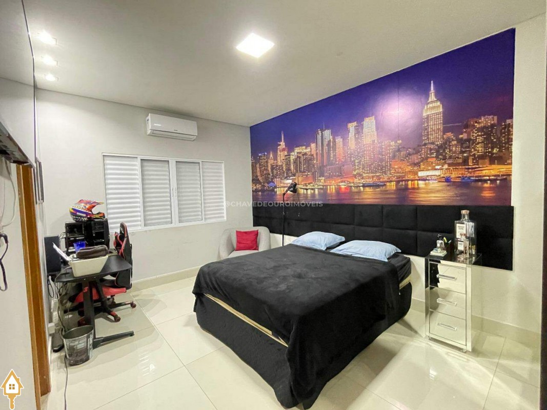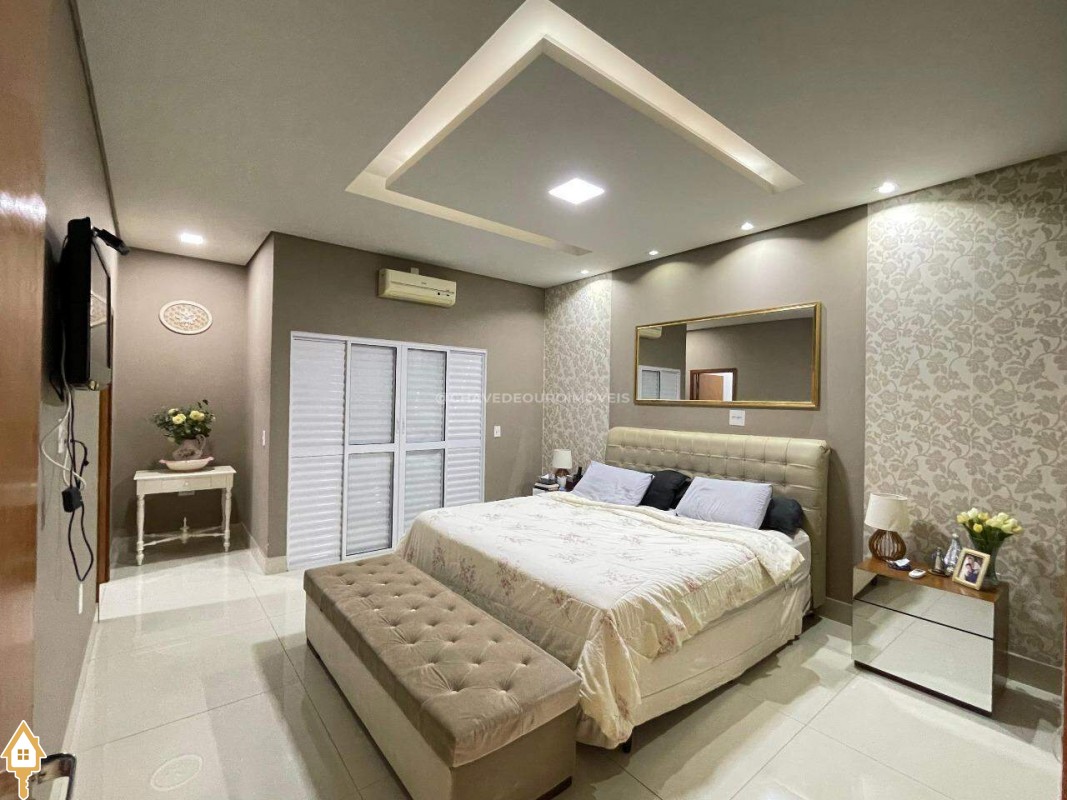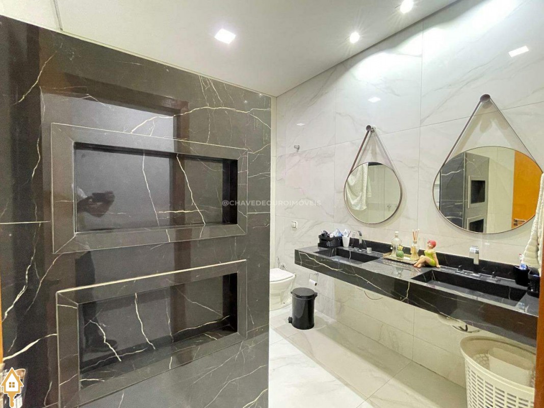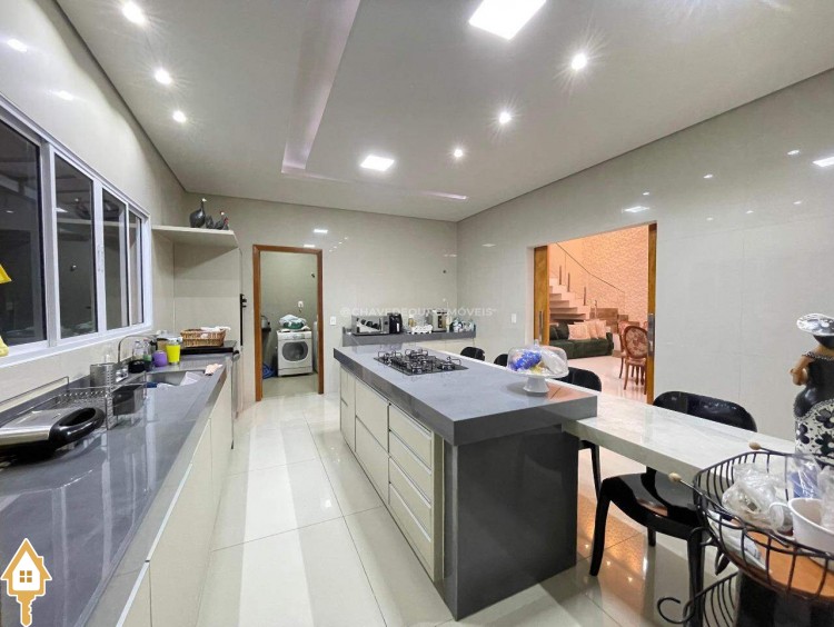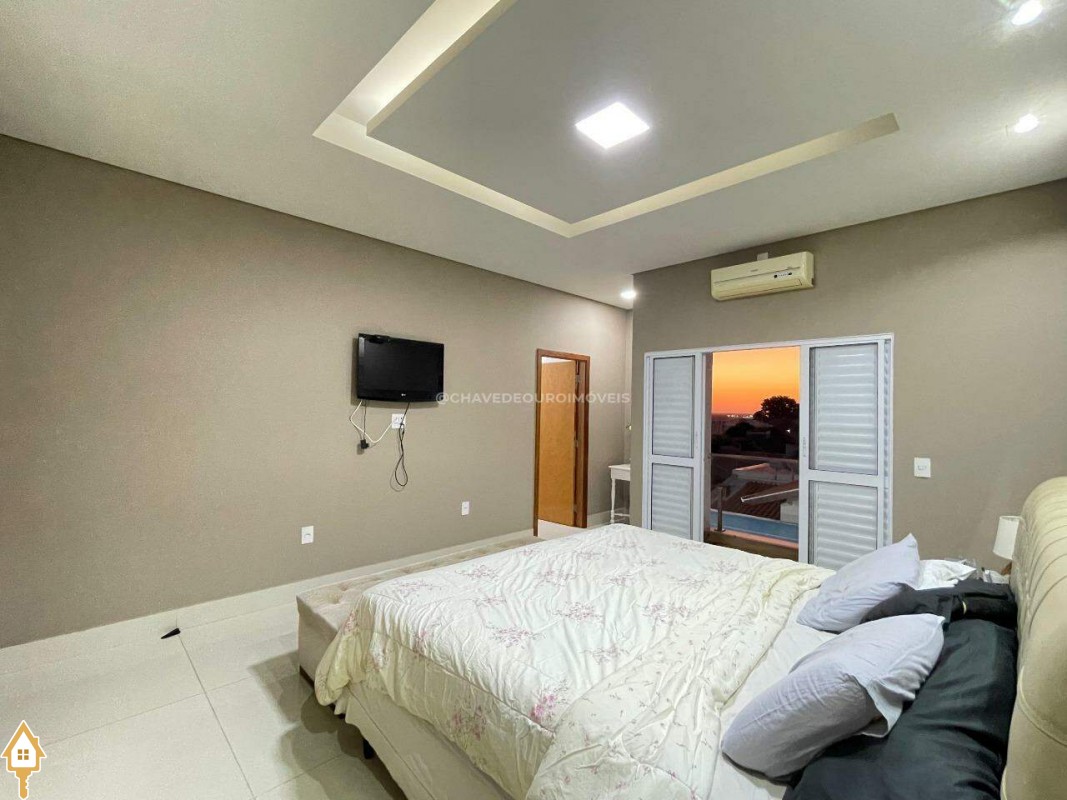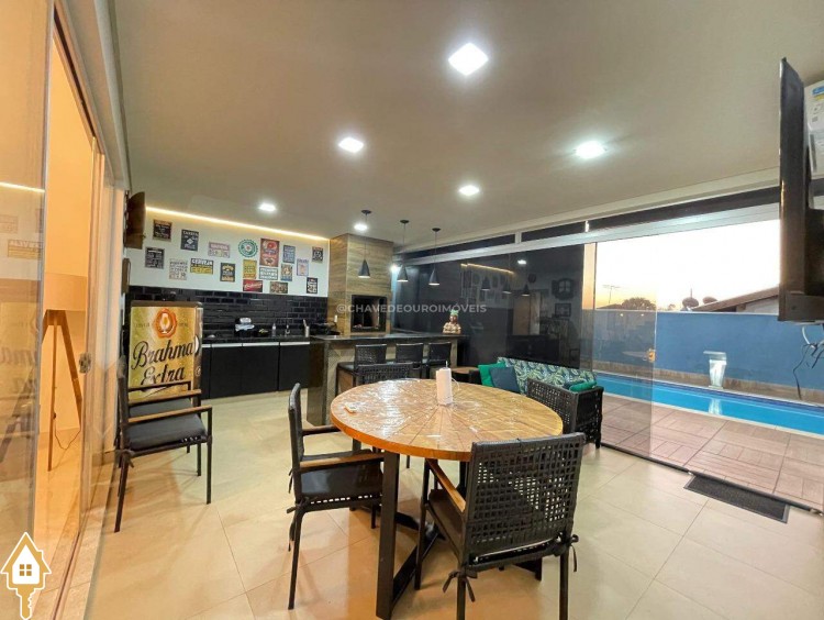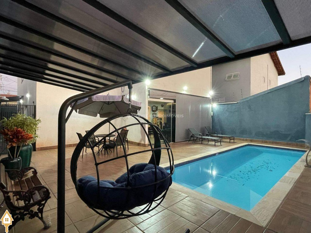 Casa a venda na cidade de Uberaba MG no bairro Jardim São Bento, o seu primeiro piso e composto de sala para três ambientes integrados e com pé direito duplo, com lindo jardim de inverno integrando os ambientes de cozinha com a varanda gourmet que e composta de churrasqueira, torre quente, ar-condicionado sua piscina com toda preparação para aquecimento, dispensa, lavabo, lavanderia e no seu segundo piso são três suítes sendo uma master com ar-condicionado, closet amplo, banheiro com pia dupla e sacada com vista para a área de lazer e sala de tv e garagem para até quatro carros. Obs: Casa com acabamento de primeira qualidade, porcelanatos Portobello e Portinari.