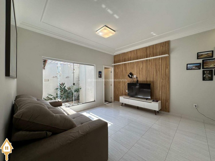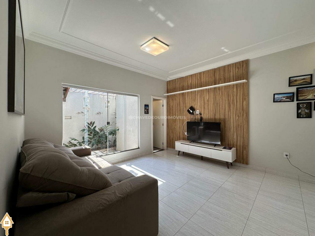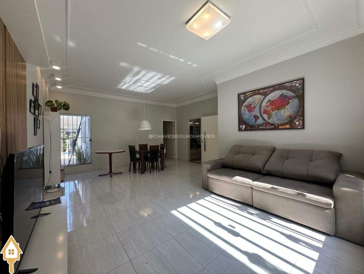 Casa localizada no bairro Jardim Nenê Gomes em Uberaba, MG. Composta de uma suíte com closet e dois quartos com armários planejados, banheiro social, sala para dois ambientes, lavabo, cozinha planejada, varanda gourmet com churrasqueira, banheiro, lavanderia e três vagas de garagem. ID IMOVIEW: 7552
