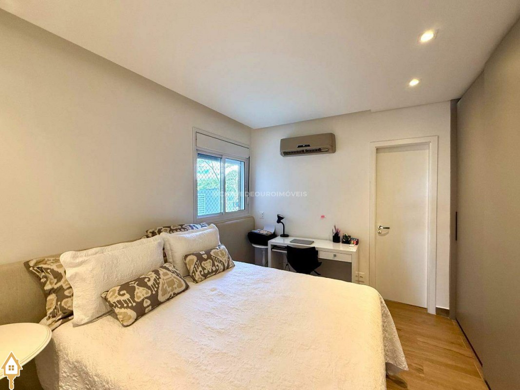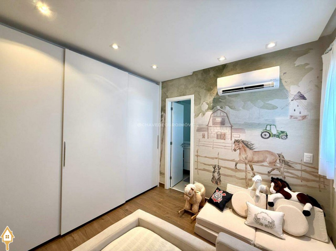 Infraestrutura do condomínio: Portaria 24h com sistema de segurança por clausura para pedestres e veículos. Salão de festas decorado e mobiliado. Hall social imponente, com mobiliário e design sofisticado. Lazer completo com quiosque gourmet, piscinas (adulta com borda infinita e infantil), brinquedoteca, espaço games, sauna e academia equipada com aparelhos de alta performance.