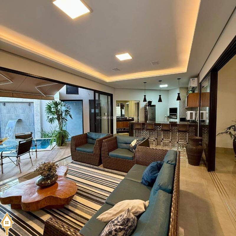 Casa de esquina, fachada imponente no condomínio Damha 2, com 04 suítes, sendo uma principal com 2 closets (masculino e feminino) e hidro, outras duas máster com closet e uma térrea. Sala para 02 ambientes com lavabo. Sala de TV integrada com varanda gourmet. Sala de TV Intima no 2º Pavimento com sacada. Área gourmet com churrasqueira, câmara fria, lavabo, piscina aquecida e sauna molhada e cozinha e área de serviço separadas, ambas com bastante armários planejados. ID IMOVIEW: 7519