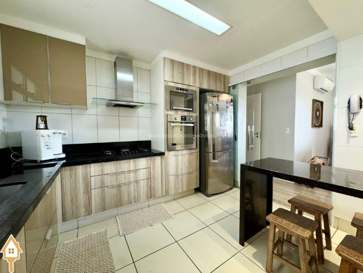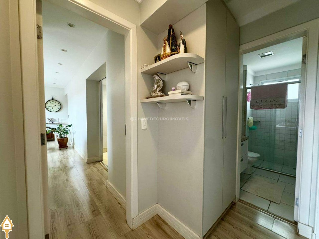 Apartamento no condomínio Iguatemi Residence, com 03 quartos, sendo um suíte, todos com armários planejados, roupeiro no corredor, banheiros com armários, espelhos e box, sala de estar e jantar com varanda integrada, churrasqueira à carvão e pia, cozinha ampla e planejada, integrada com lavanderia e despejo. Lavabo, 02 vagas de garagens (gaveta). Marcenaria de boa qualidade e conservada, piso das áreas secas do tipo paviflex.