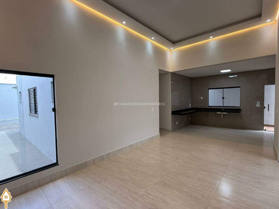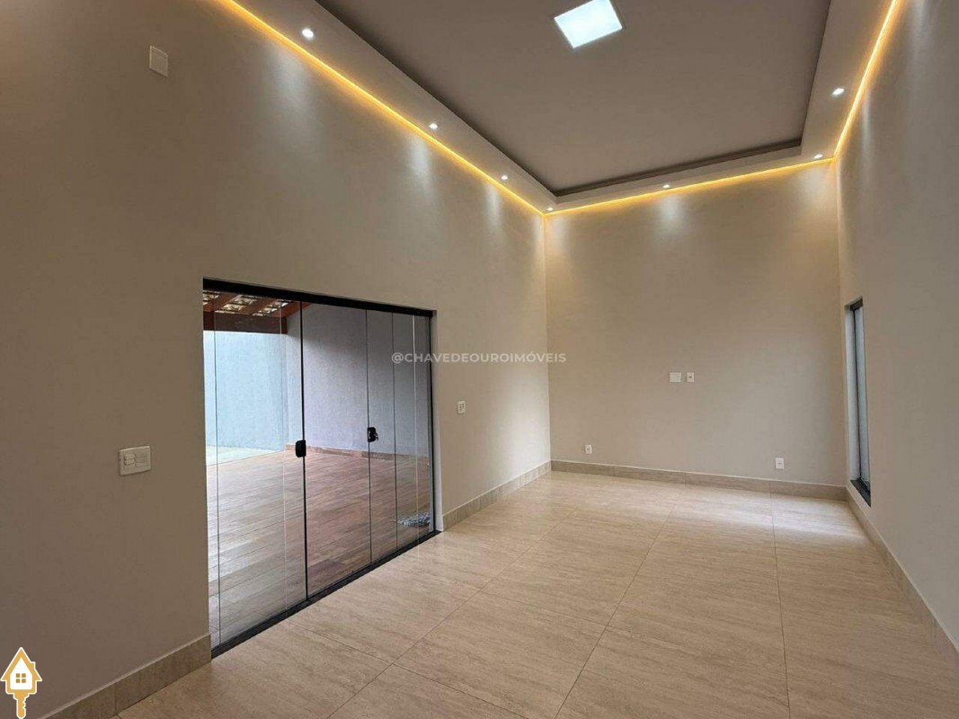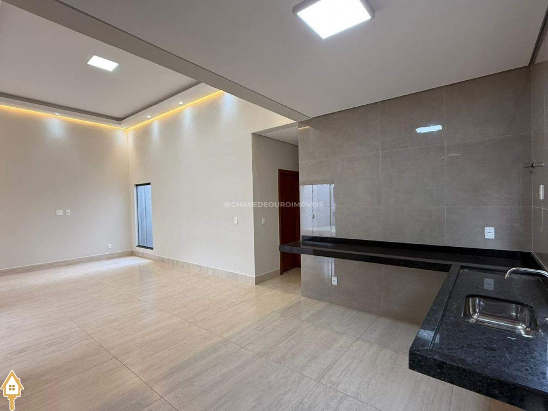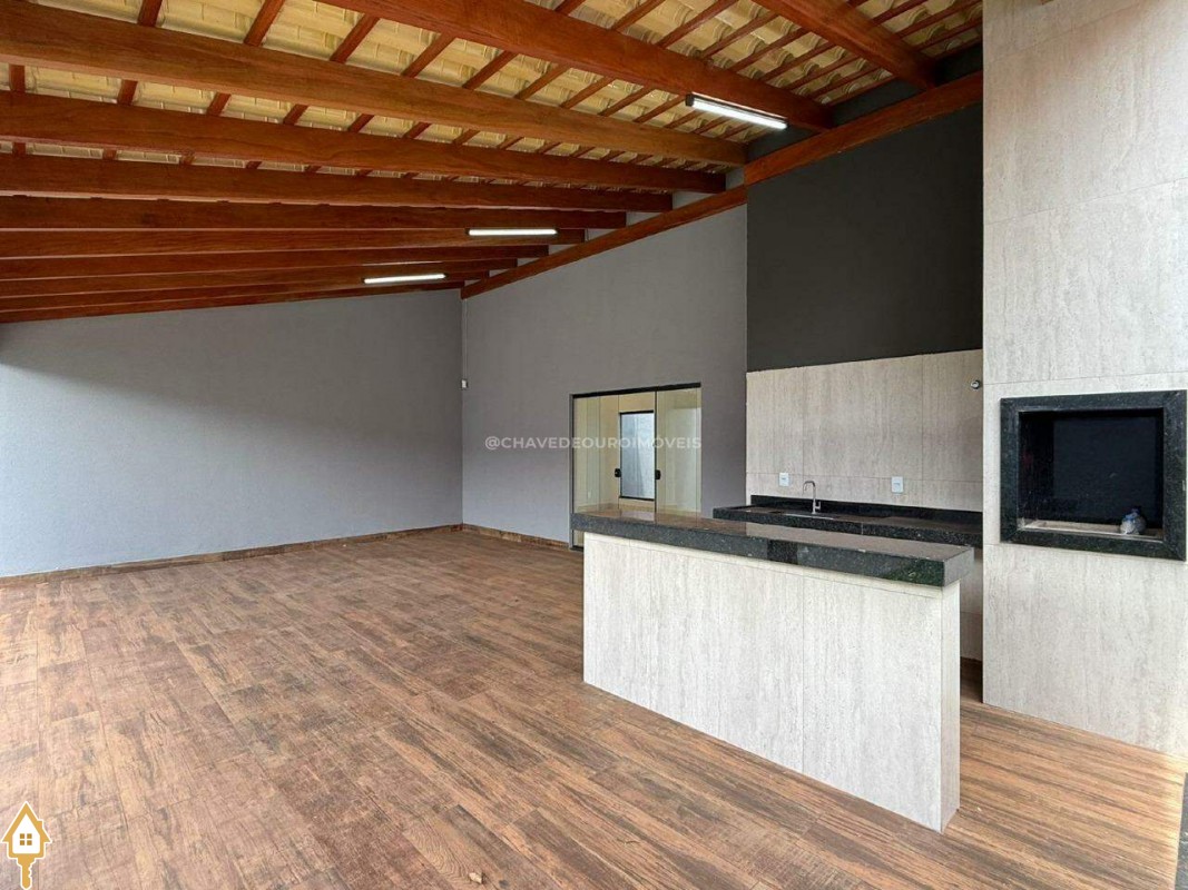 Casa localizada no bairro Parque das Laranjeiras em Uberaba, MG. Composta de três quartos, sendo uma suíte, banheiro social, sala para dois ambientes com o pé direito duplo integrada à cozinha, área de serviço, varanda gourmet e garagem para quatro veículos. ID IMOVIEW: 7610