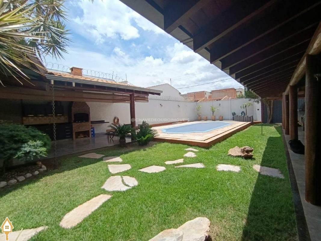 Casa localizada no bairro Olinda em Uberaba, MG. Composta de três suítes, sendo duas com closet e banheira de hidromassagem. Dispõe de dois lavabos, sala de jantar, sala de estar, mezanino com sala de home theater, escritório, cozinha planejada, ampla área gourmet com churrasqueira e piscina, dispensa, área de serviço com lavanderia e vaga de garagem para quatro veículos.