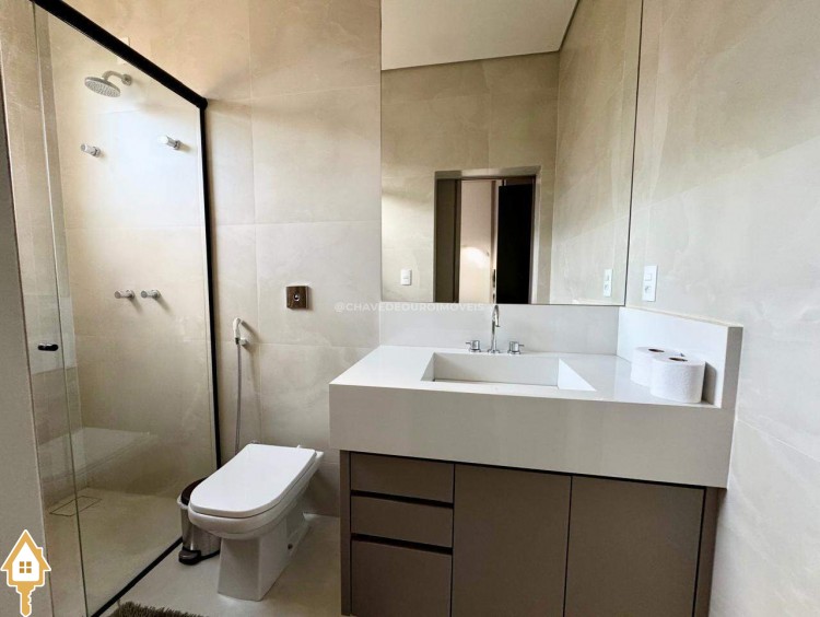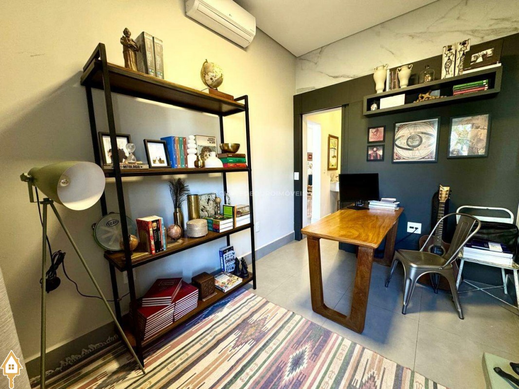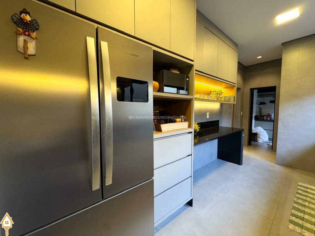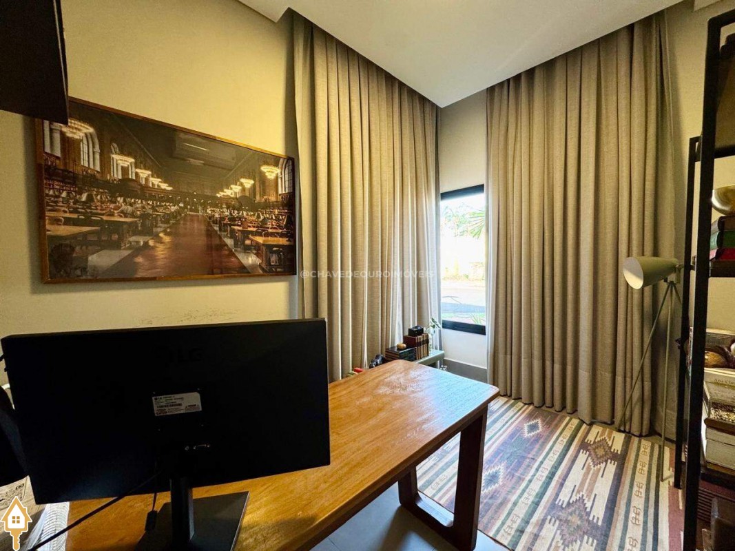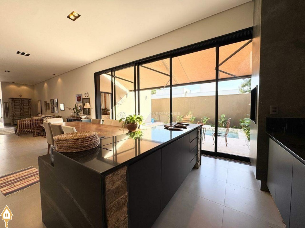 Casa localizada no condomínio Estância dos Ipês em Uberaba, MG. Composta de três suítes com móveis planejados, e escritório com banheiro. Dispõe de roupeiro no corredor, sala integrada para 3 ambientes, área gourmet equipada com churrasqueira, pia e balcão com ponto para cooktop. Conta com cozinha, área de serviço com banheiro, piscina aquecida e lavabo externo.