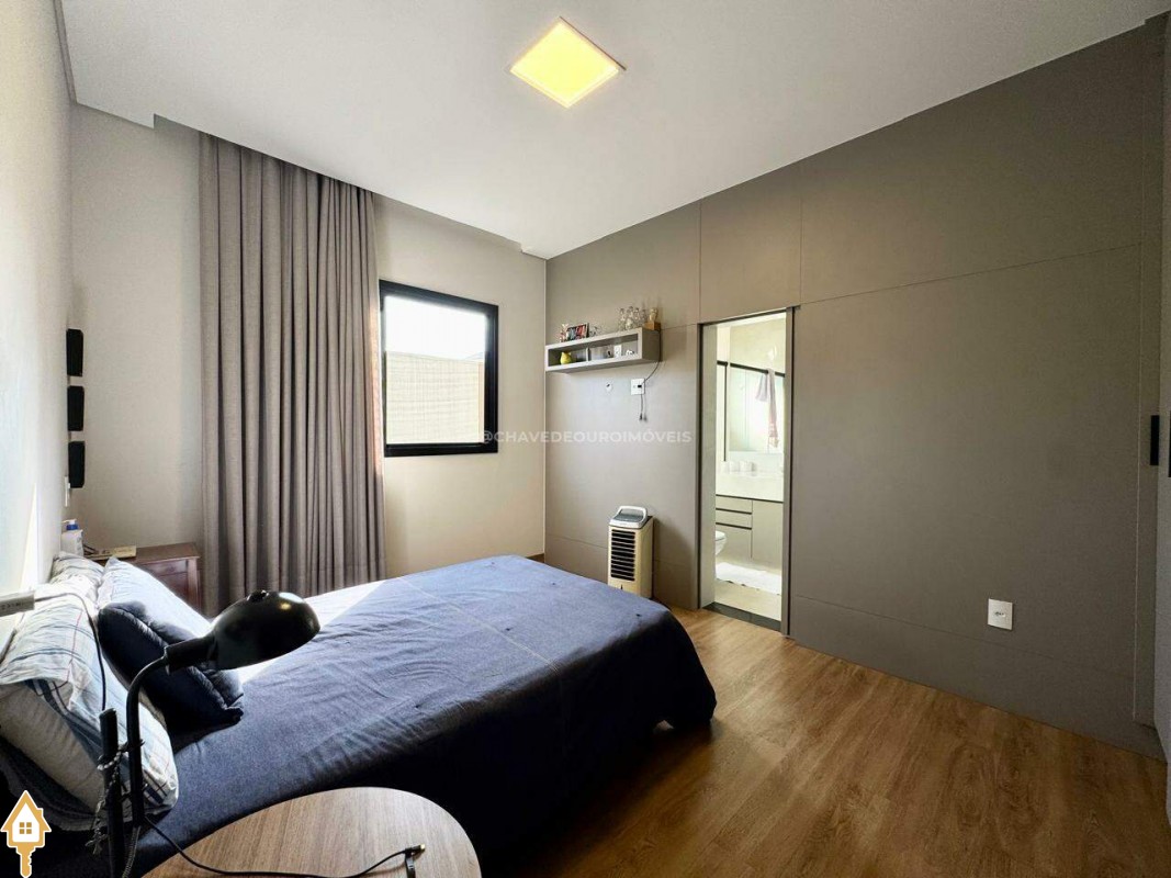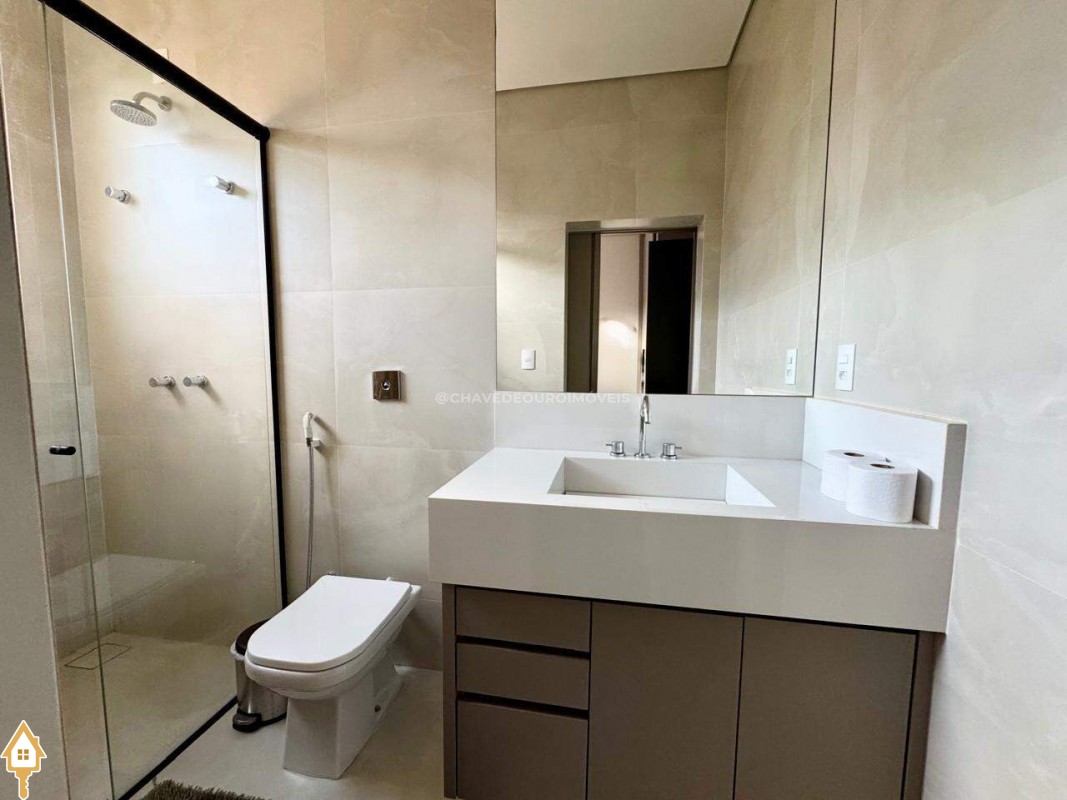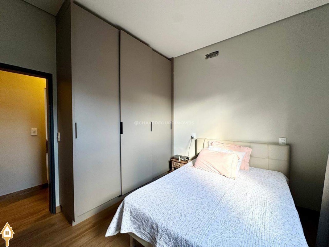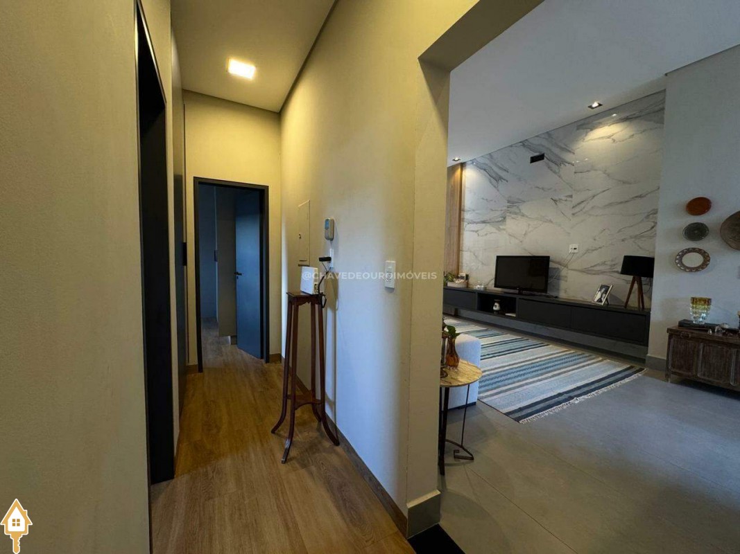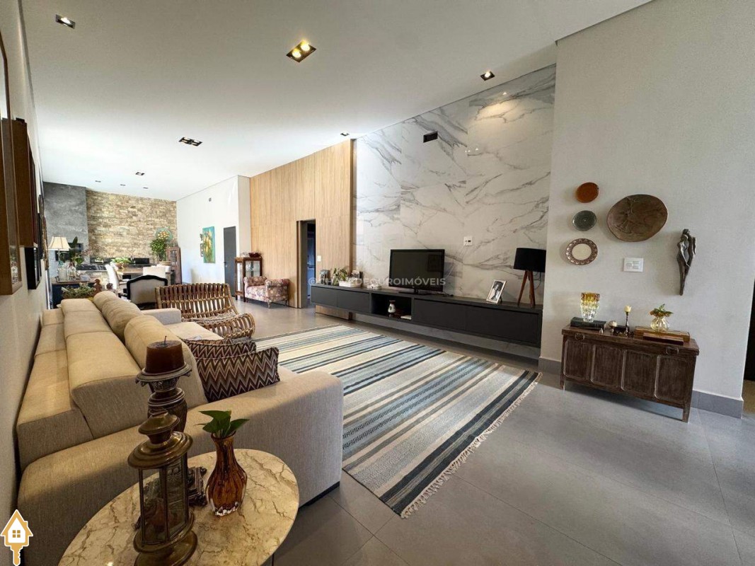Casa localizada no condomínio Estância dos Ipês em Uberaba, MG. Composta de três suítes com móveis planejados, e escritório com banheiro. Dispõe de roupeiro no corredor, sala integrada para 3 ambientes, área gourmet equipada com churrasqueira, pia e balcão com ponto para cooktop. Conta com cozinha, área de serviço com banheiro, piscina aquecida e lavabo externo.