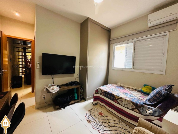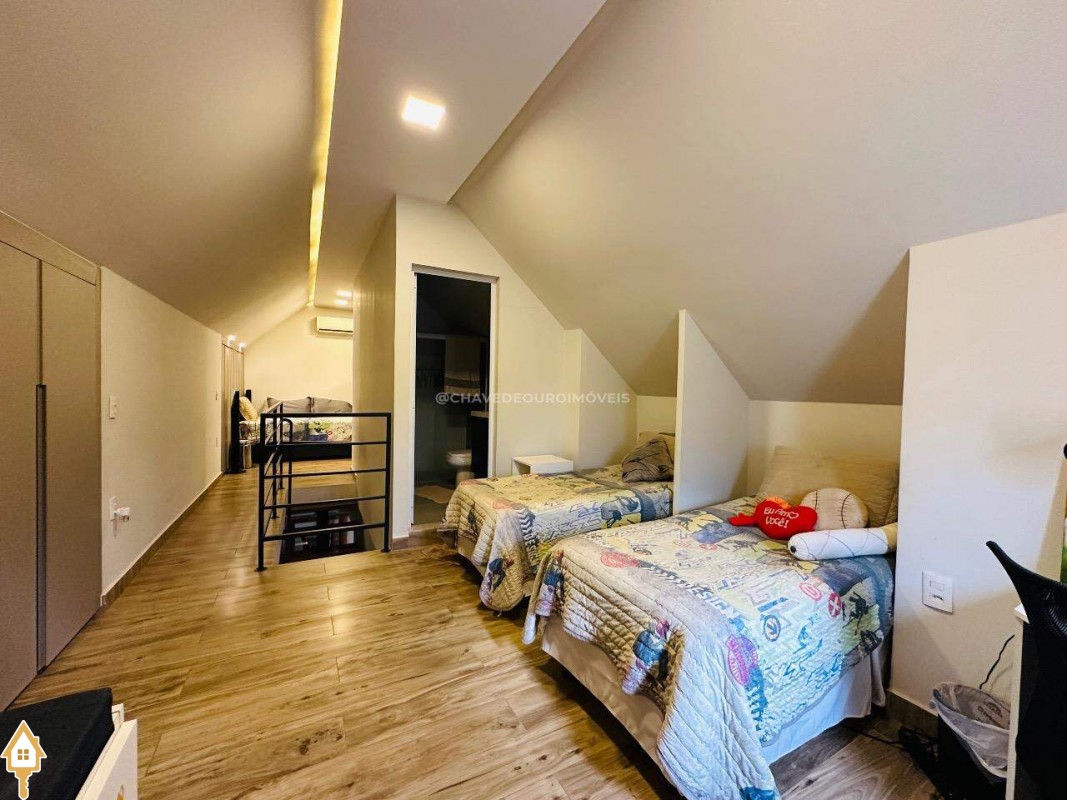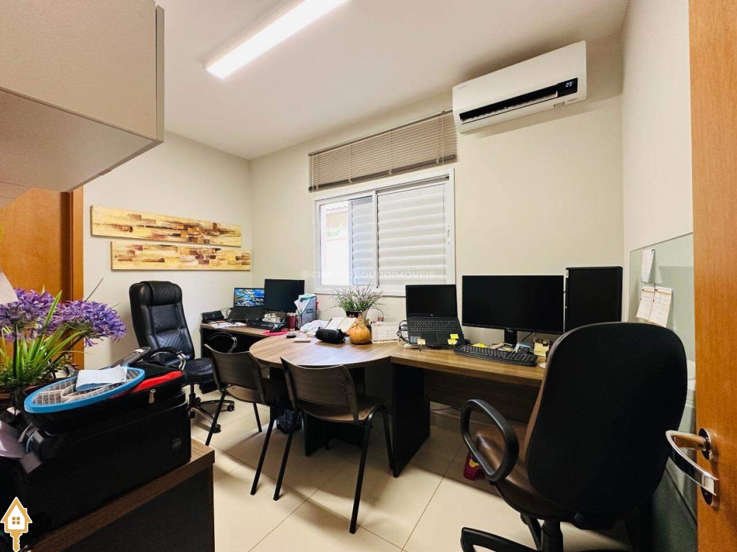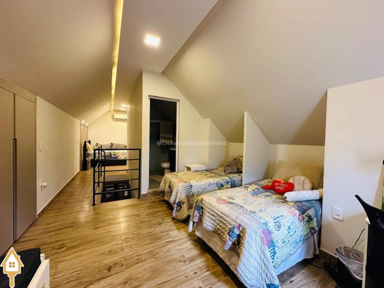 Casa localizada no Condomínio Ayat em Uberaba, MG. Composta de quatro suítes, espaço home office, sala, cozinha gourmet com fogão elétrico, coifa e churrasqueira. Dispõe de sótão com espaço independente equipado com suíte, copa e área de serviço.