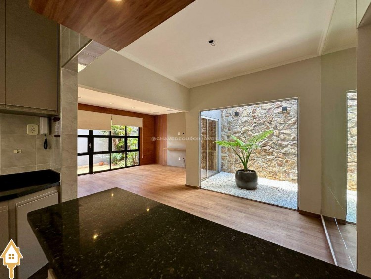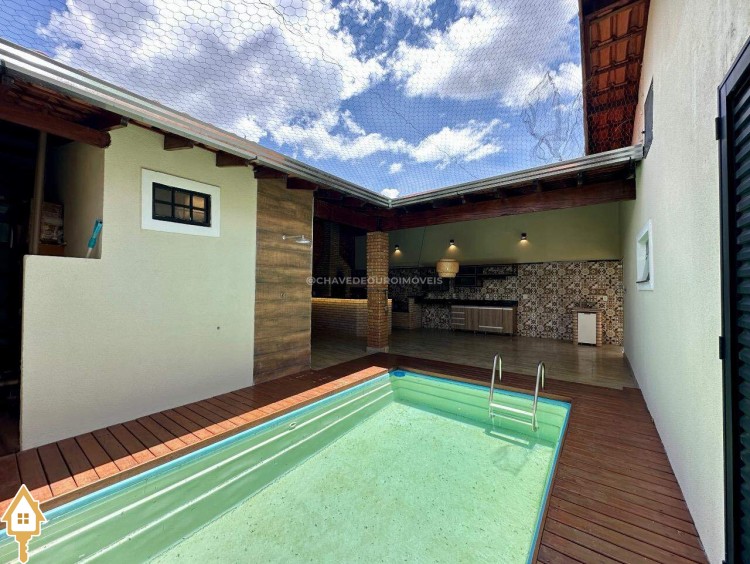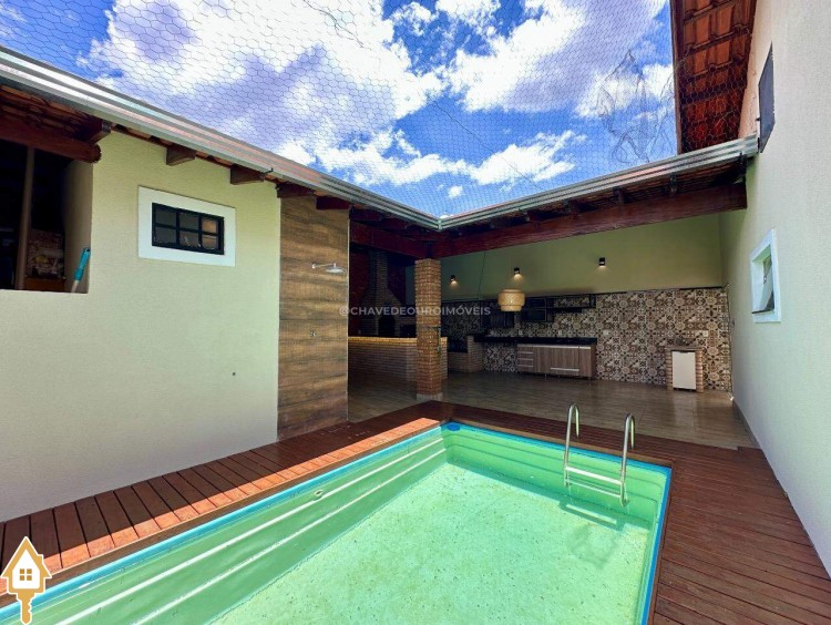 Casa localizada no bairro Estados Unidos em Uberaba, MG. Composta de três quartos planejados, banheiro social, sala para dois ambientes, jardim de inverno, cozinha planejada, varanda gourmet com churrasqueira, piscina, despensa, banheiro externo e duas vagas de garagem.