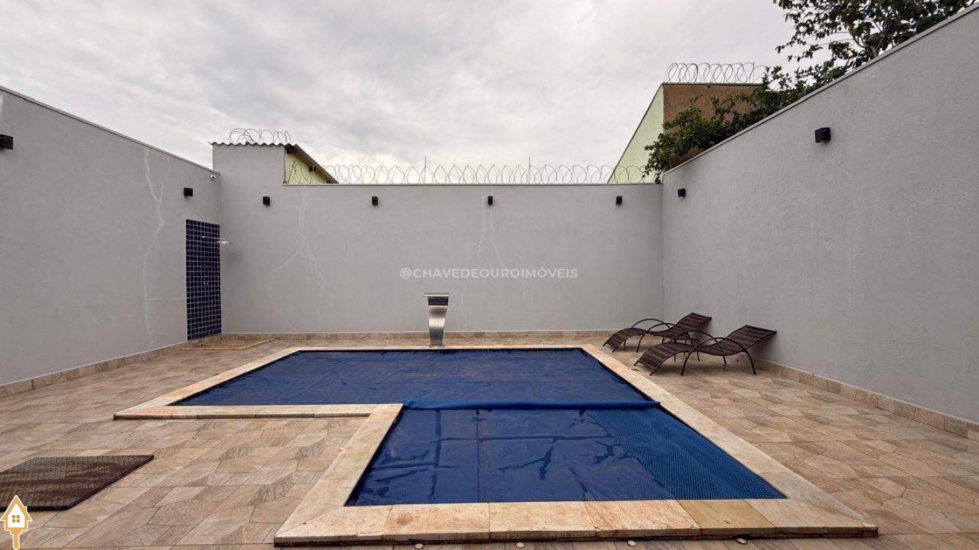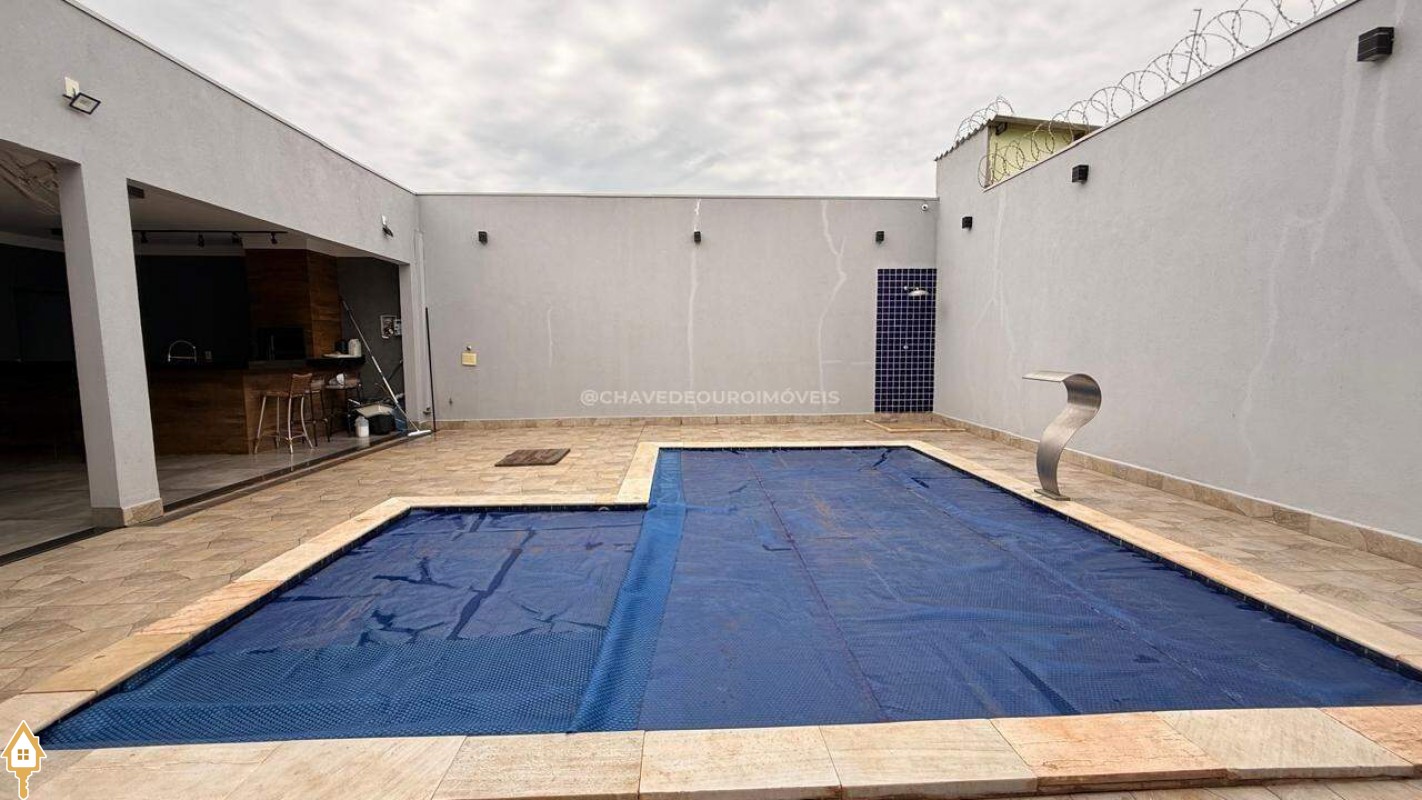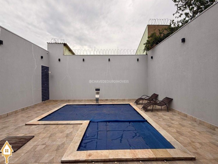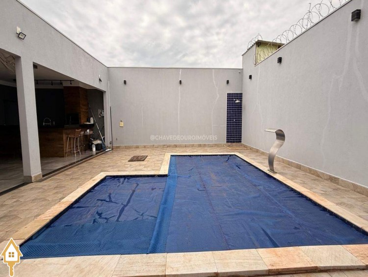 Casa localizada no bairro Quinta Boa Esperança em Uberaba, MG. Composta de dois quartos, sendo uma suíte, três banheiros, sala, varanda gourmet com piscina, ar condicionado, área de serviço, armários de banheiro e cozinha, box nos banheiros, lavabo e duas vagas de garagem. ID IMOVIEW: 7647