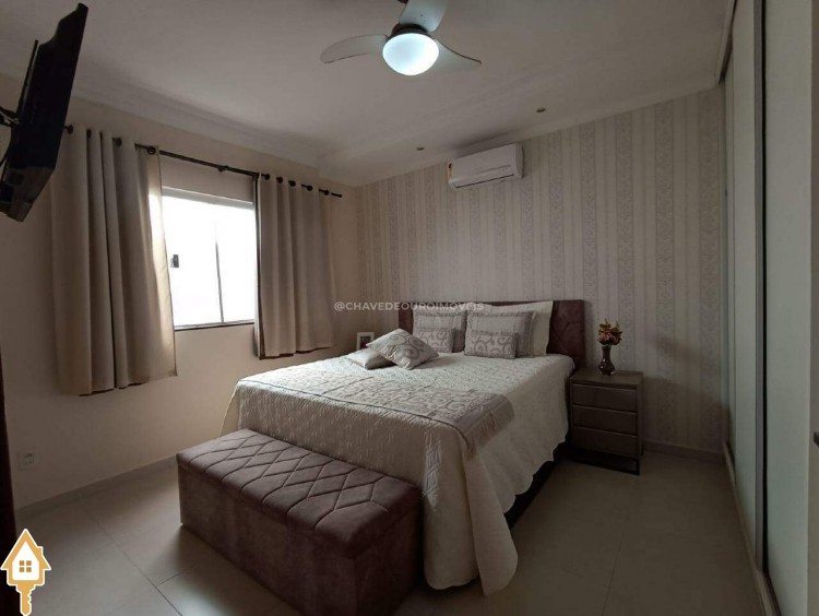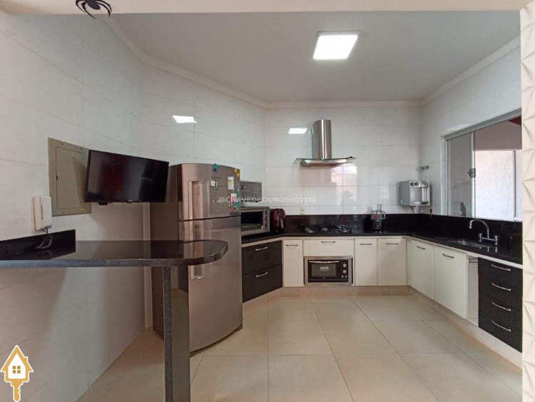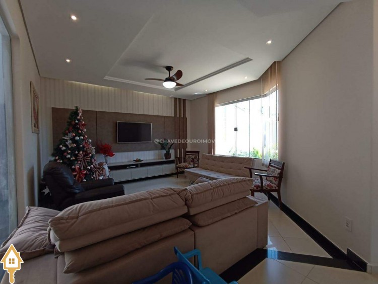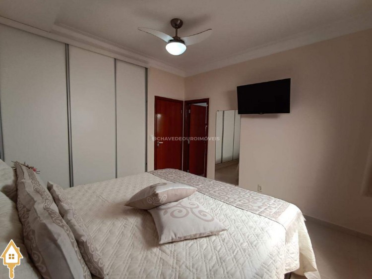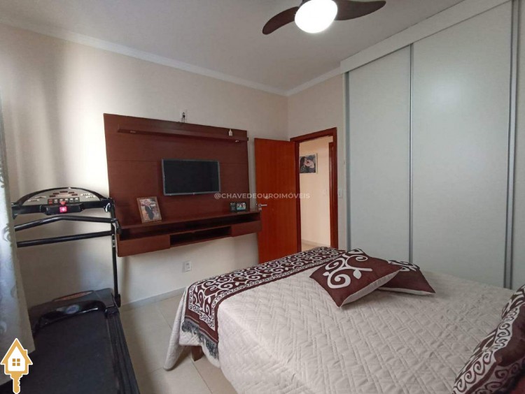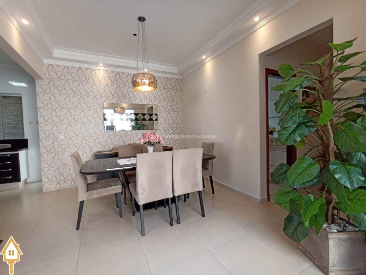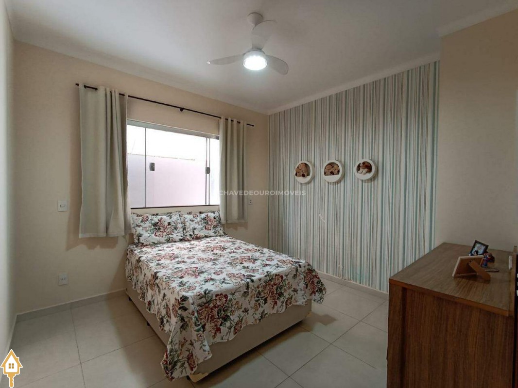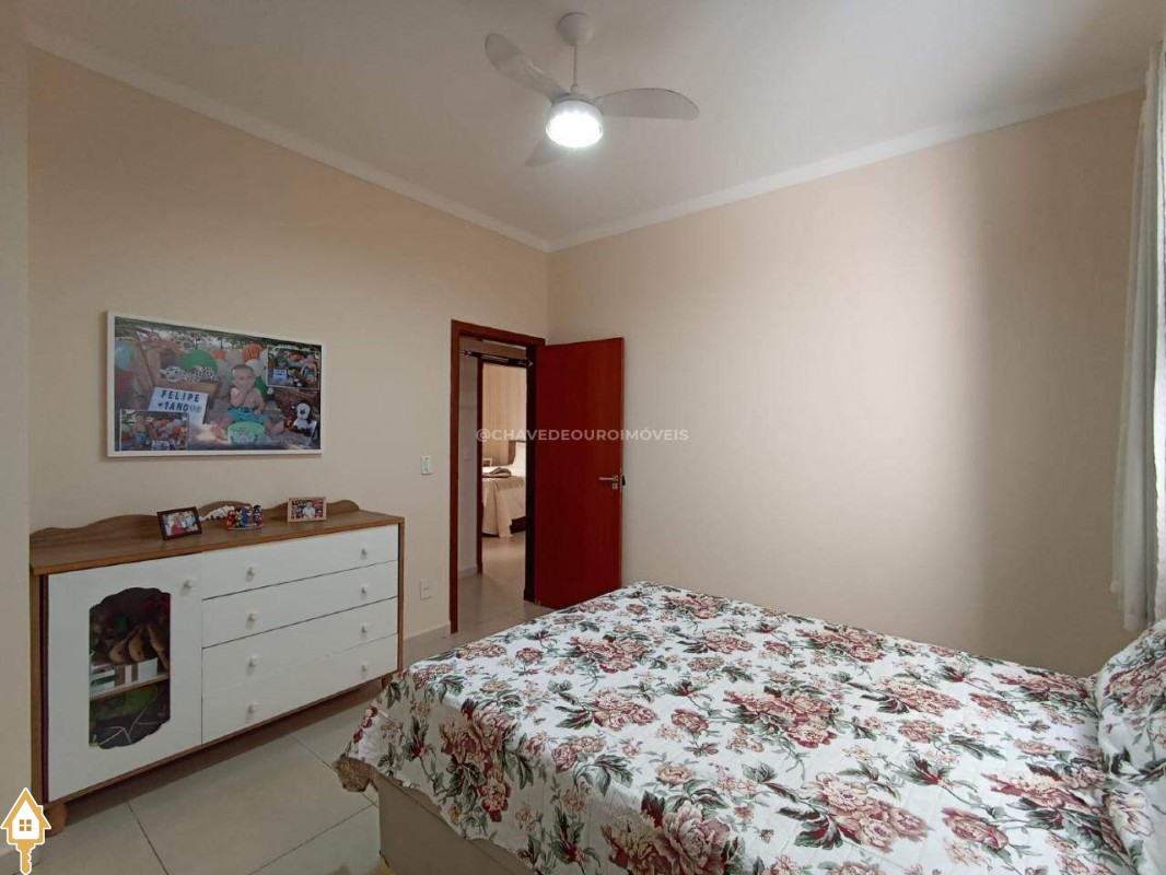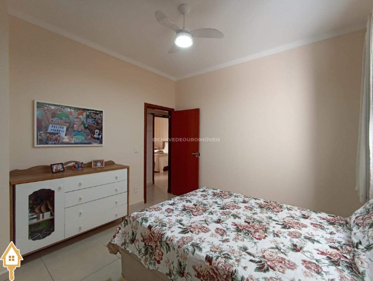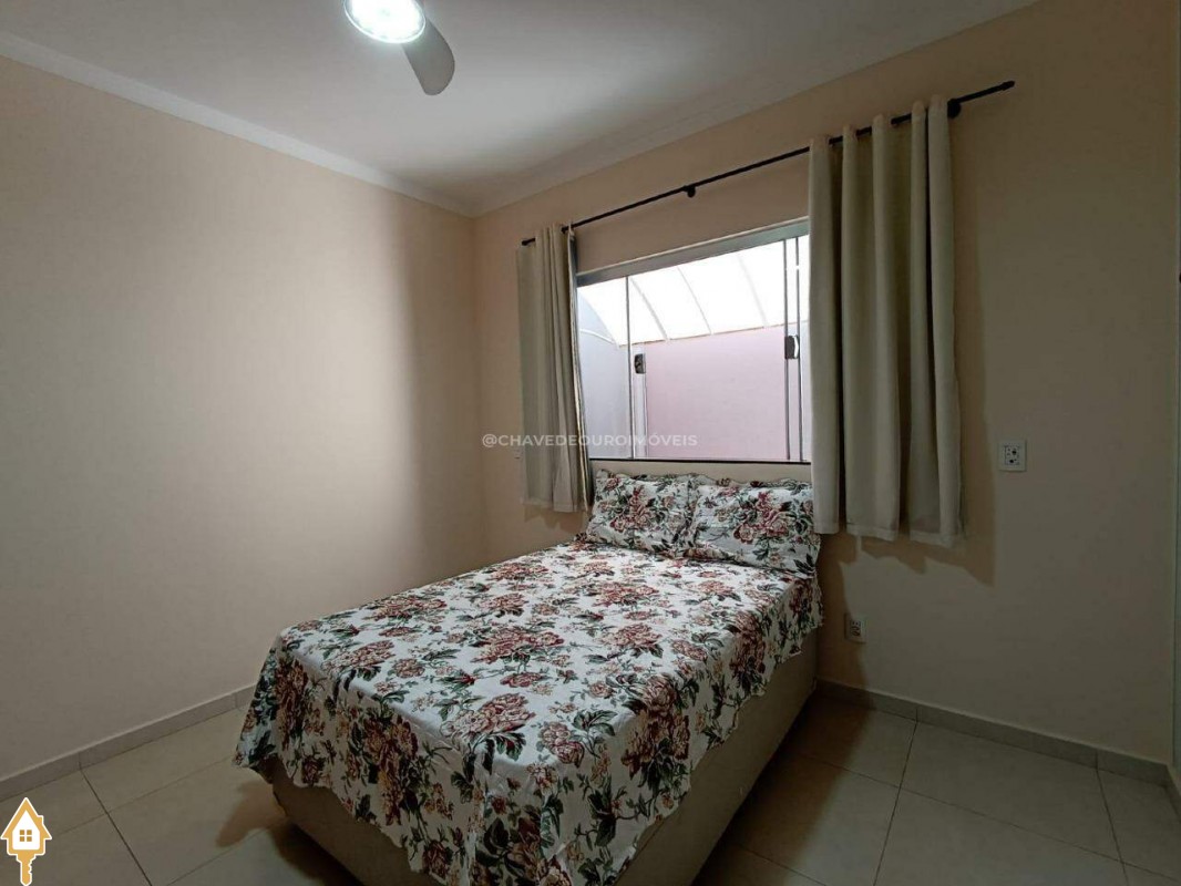 Casa localizada no bairro Jardim do Lago em Uberaba, MG. Composta de três quartos, sendo duas suítes, sala de TV, sala de jantar, cozinha equipada com planejados, três banheiros, área de serviço e garagem para dois veículos.