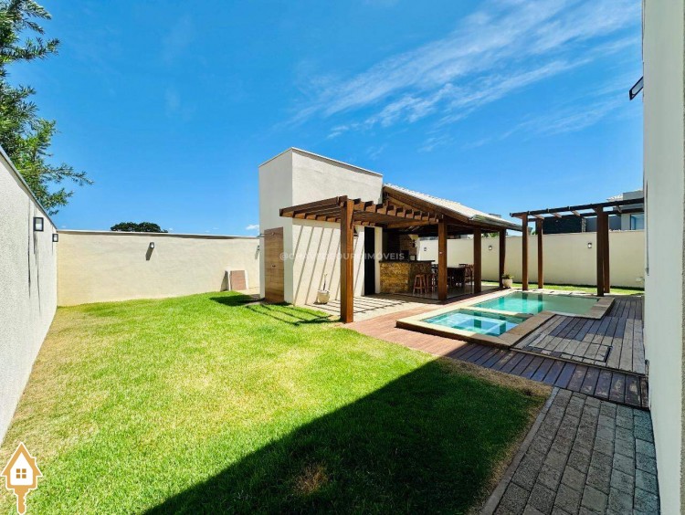 Casa localizada no Condomínio Cyrela Landscape em Uberaba, MG. Composta de uma suíte máster e duas suítes no modelo americano. Dispõe de sacada frontal voltada para a praça, escritório reversível para quarto, sala pé-direito duplo, sala de home TV, lavabo, banheiro social, cozinha, despensa, lavanderia e dispensa de apoio. Conta com quintal, piscina, hidromassagem, sauna, banheiro externo, quiosque com balcão, churrasqueira e forno/fogão a lenha e garagem com vaga para quatro veículos, sendo duas cobertas. ID IMOVIEW: 7677