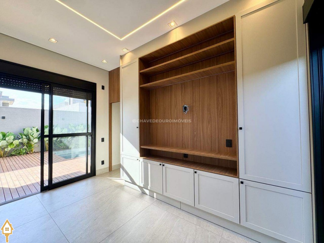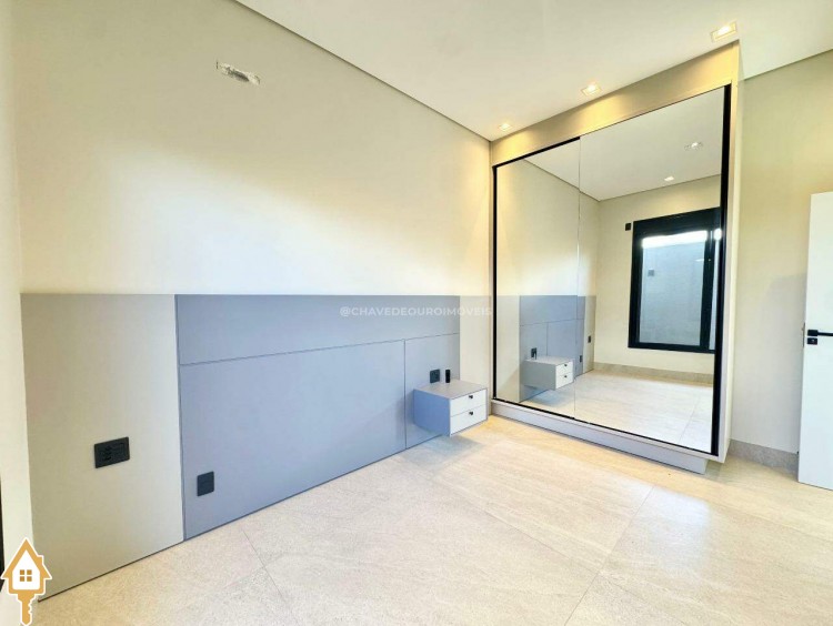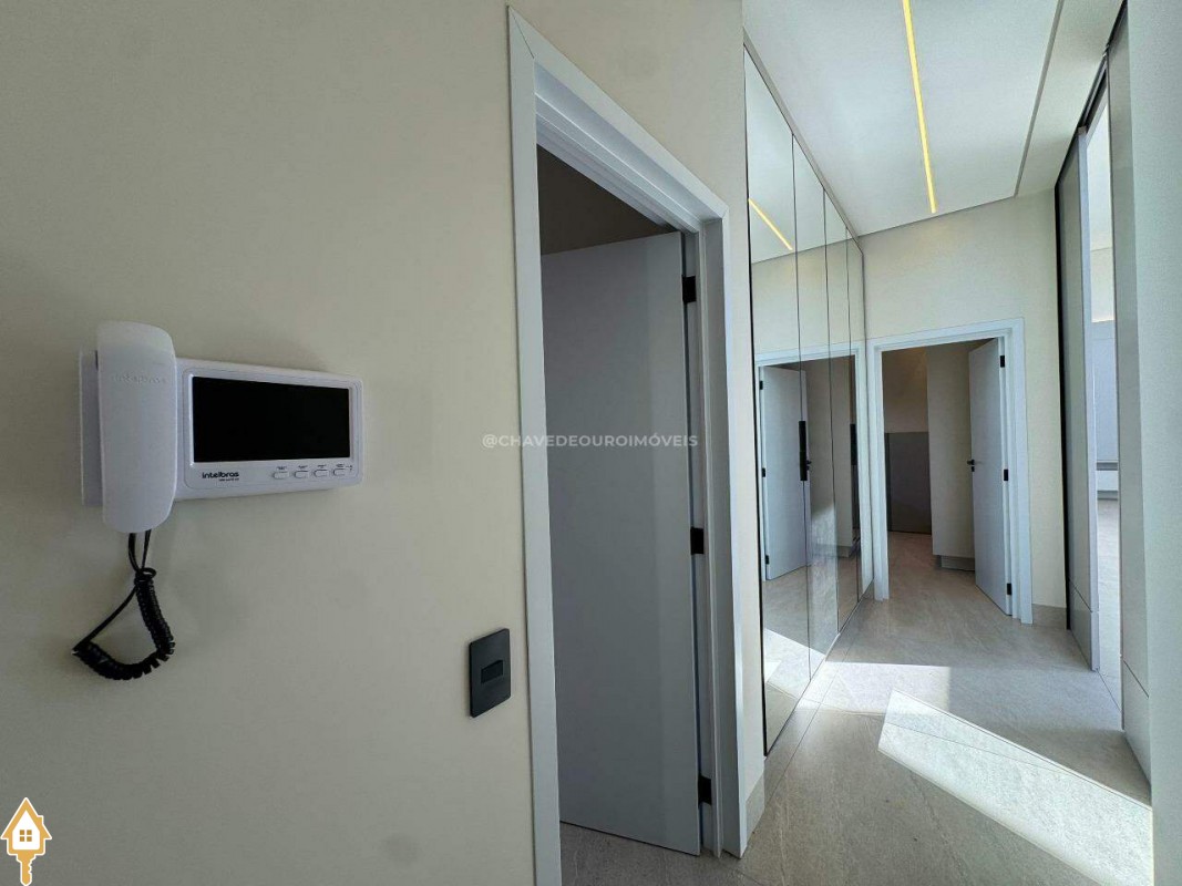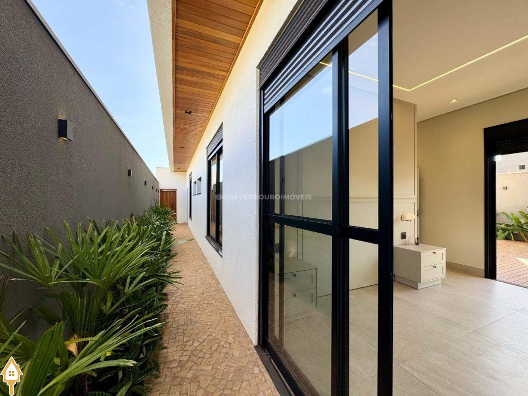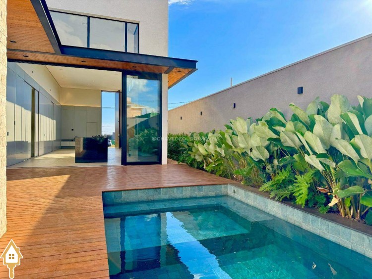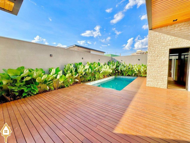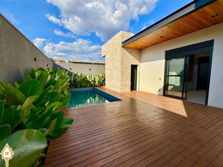 Casa localizada no condomínio Damha III em Uberaba, MG. Composta de três suítes, sendo a principal com closet, janelas e porta automatizada, sala integrada para dois ambientes, cozinha gourmet equipada com churrasqueira à carvão, forno, cooktop e microondas embutidos, piscina com aquecimento elétrico e gerador de sal (Pool House), banheiro na área da piscina, deck em madeira, paisagismo pronto, lavanderia separada com entrada independente e duas vagas de garagem cobertas.