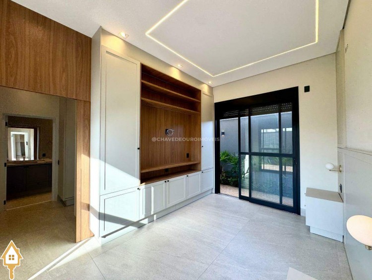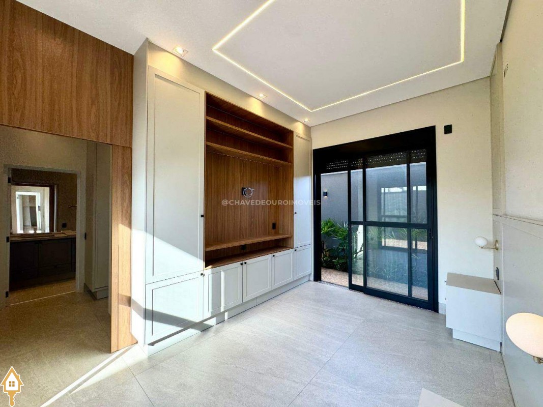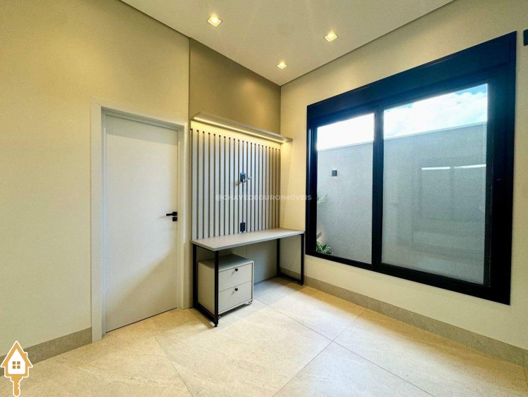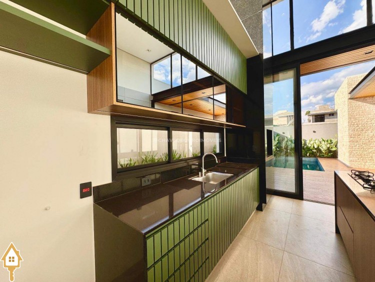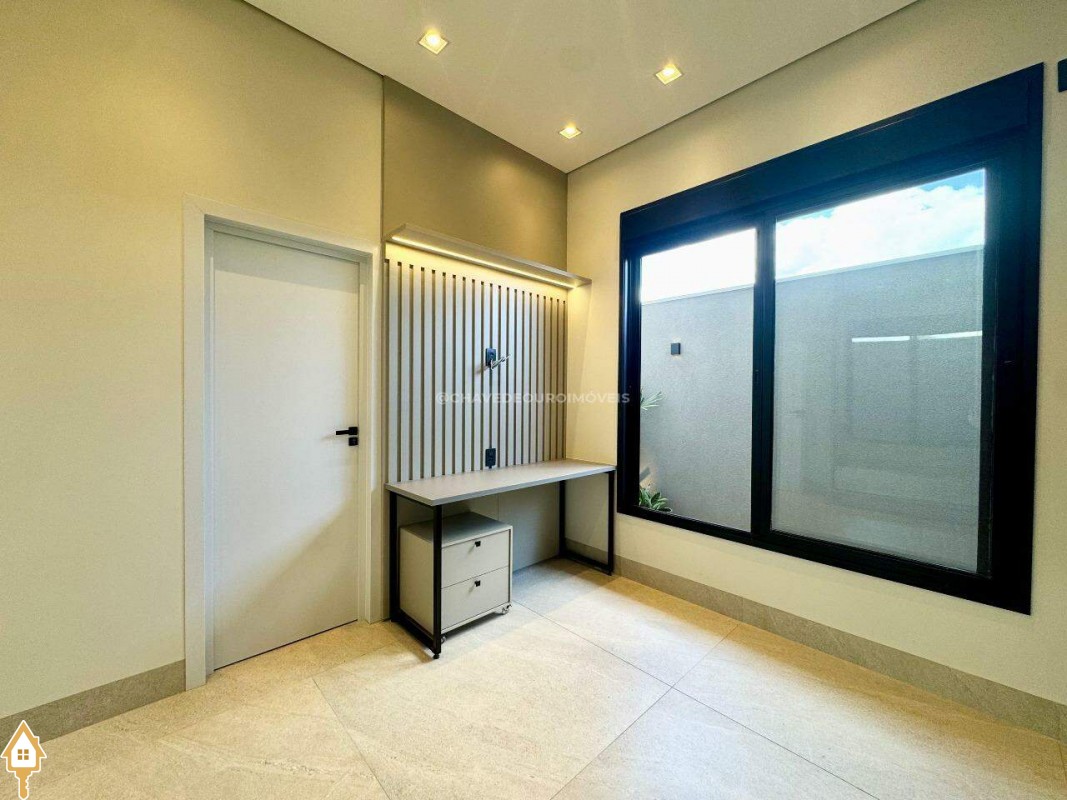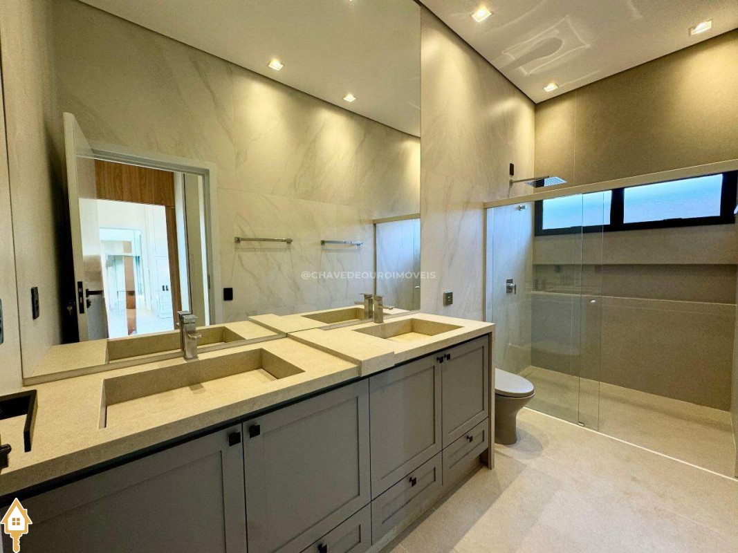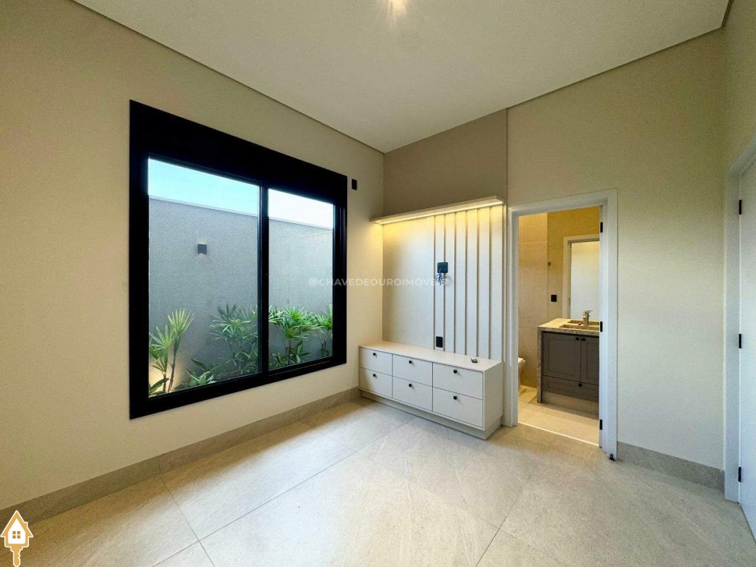 Casa localizada no condomínio Damha III em Uberaba, MG. Composta de três suítes, sendo a principal com closet, janelas e porta automatizada, sala integrada para dois ambientes, cozinha gourmet equipada com churrasqueira à carvão, forno, cooktop e microondas embutidos, piscina com aquecimento elétrico e gerador de sal (Pool House), banheiro na área da piscina, deck em madeira, paisagismo pronto, lavanderia separada com entrada independente e duas vagas de garagem cobertas.