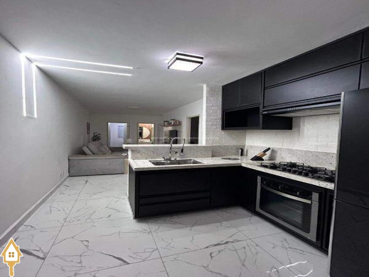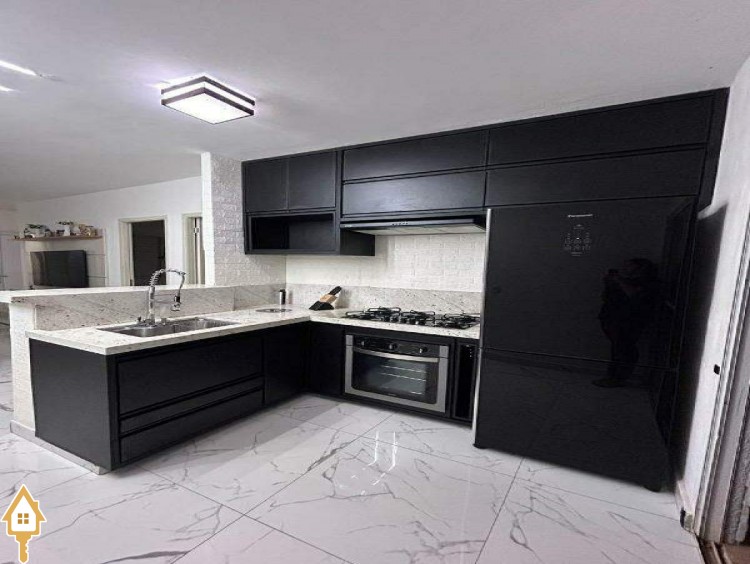 Casa no condomínio Moradas com 3 quartos, cozinha gourmet completa com forno embutido, cooktop, suggar, pia gourmet com lixeira e torre de tomadas embutidas e armários planejados e um banheiro em design moderno.