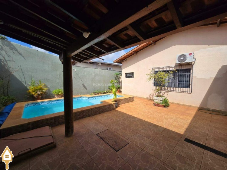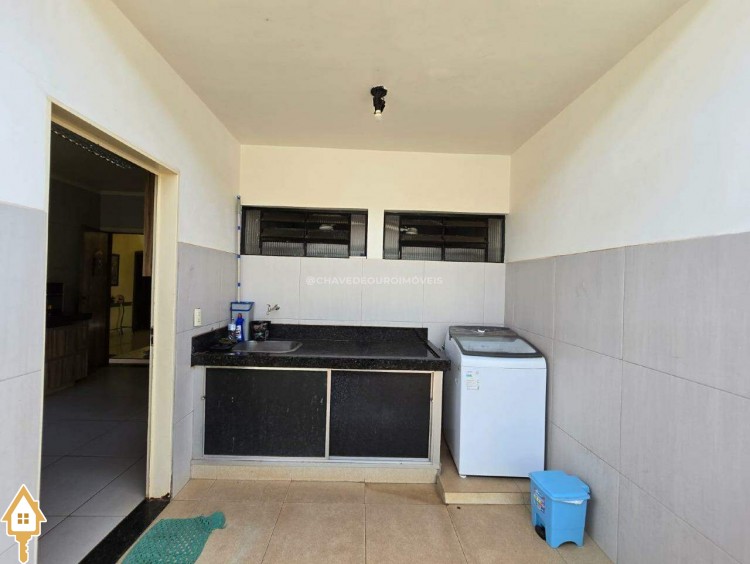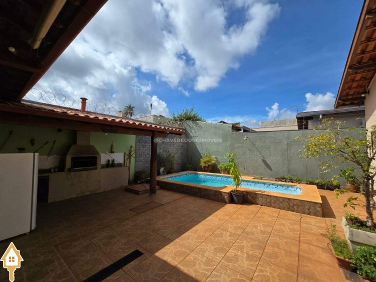 Varanda conta com 2 vagas cobertas de garagem e acesso direto para área de serviço, quarto de despejo, lavabo e a área gourmet, com churrasqueira de alvenaria, piscina com hidromassagem e edícula.