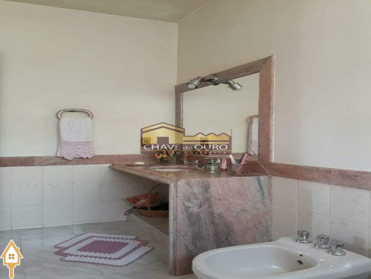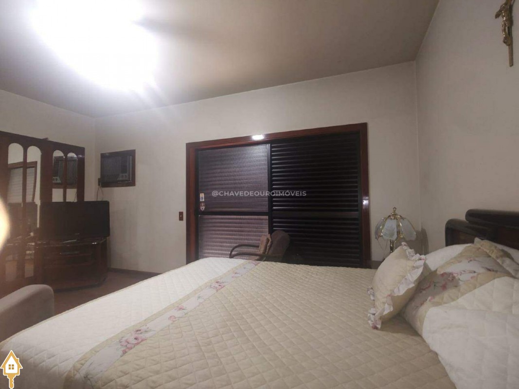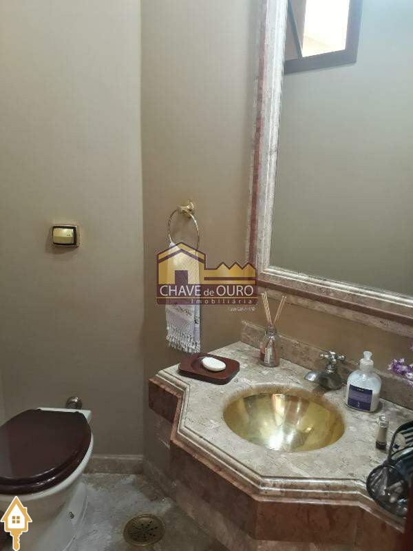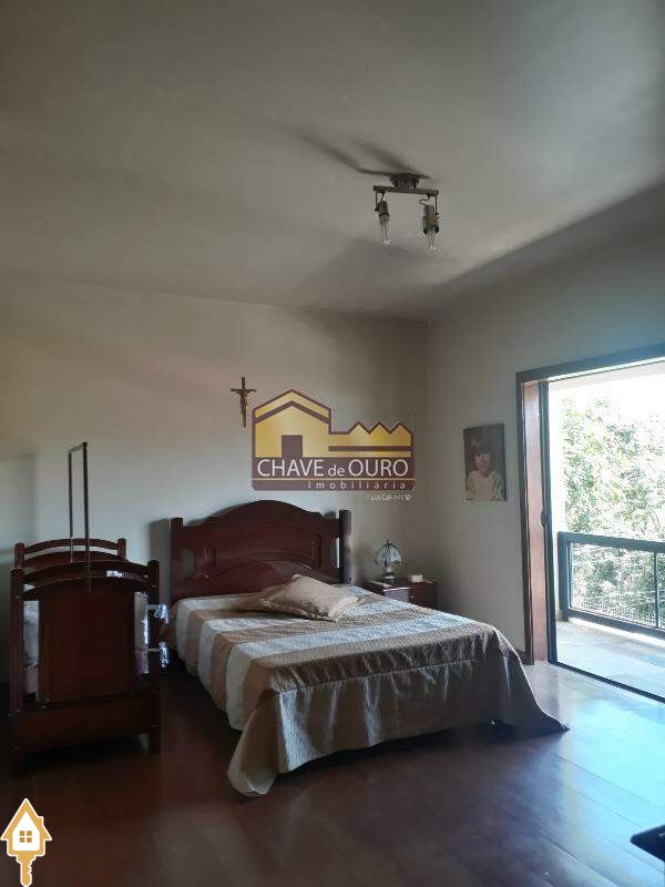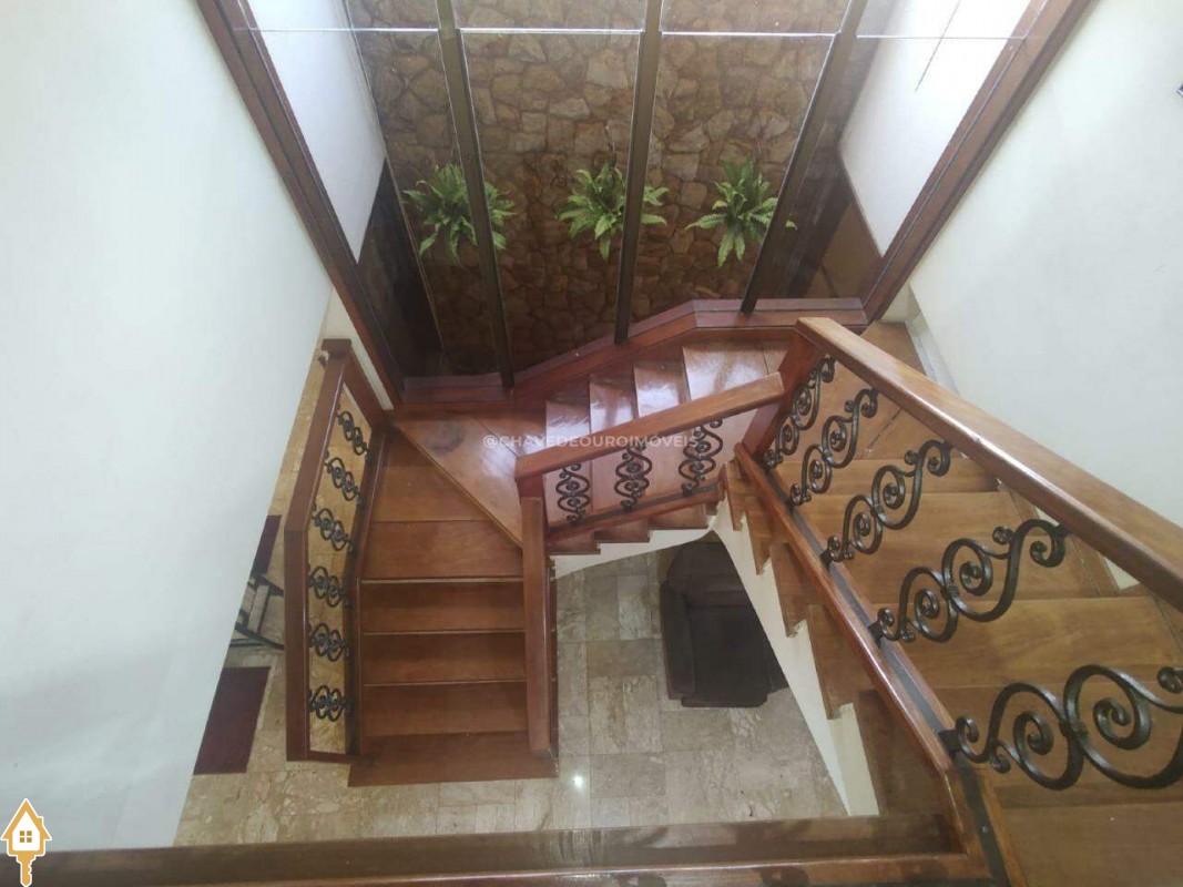 Piso superior conta com 4 quartos completos, sendo 2 suítes, na suíte master, banheiro com banheira de hidromassagem, revestido em mármore rosa, armários com madeira maciça, e 1 banheiro social. Área de lazer com piscina, churrasqueira e garagem para 4 carros.