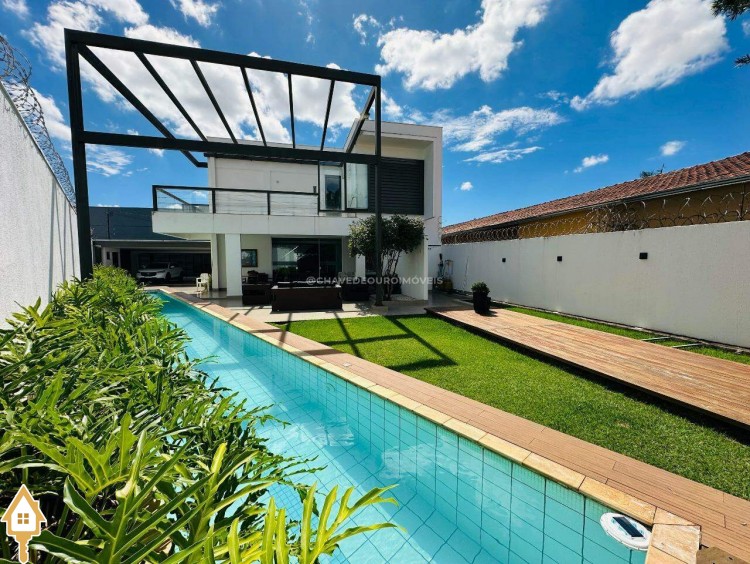 Casa à venda próxima ao Aeroporto de Uberaba com loja anexa na frente e entrada independente, pavimento térreo com sala de estar e jantar, cozinha com ilha, lavanderia, lavabo fosso para elevador piscina, deck, lago e varanda gourmet com churrasqueira segundo pavimento com hall de circulação, terraço e três suítes sendo a principal com closet, imóvel ideal para quem busca conforto sofisticação e praticidade em uma localização privilegiada. ID IMOVIEW: 3173