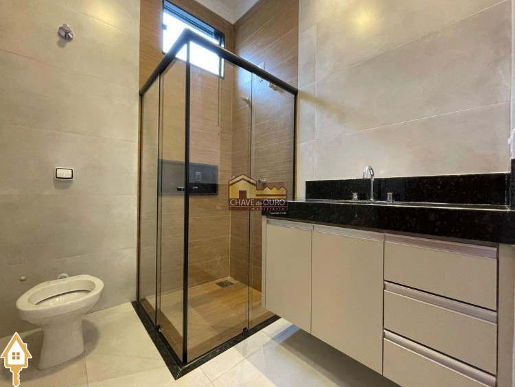 Casa à venda em Uberaba próxima ao Fórum, de três quartos com jardim de inverno (sendo uma suíte com closet), WC social, sala, cozinha planejada, despensa, área de serviço, varanda gourmet com churrasqueira, lavabo e garagem para dois carros. Obs: Rica em armários planejados, rebaixo em gesso, projeto luminotécnico e aquecedor solar.