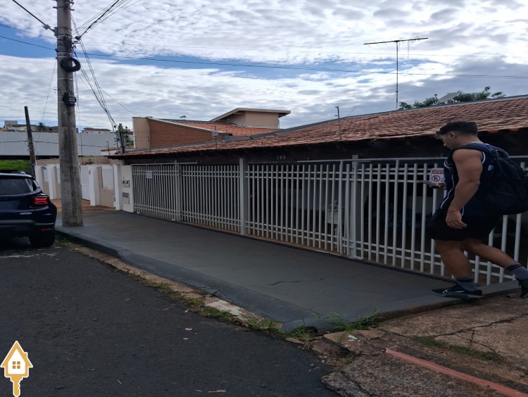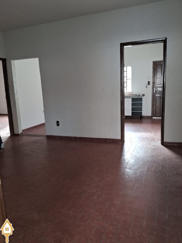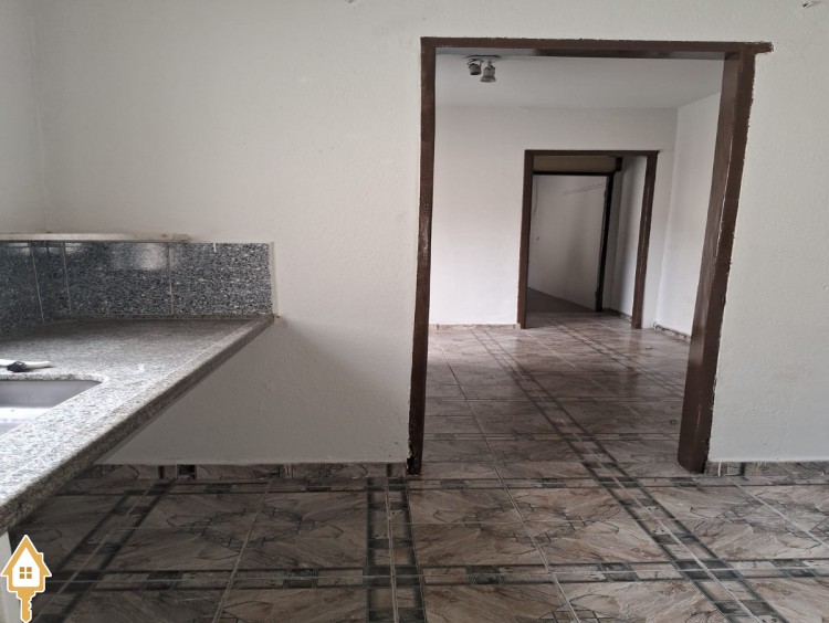 Casa com 2 quartos, sendo um suíte. 2 salas( podendo uma ser usada como quarto). Cozinha , Banheiro social. No fundo há uma edícula com sala, cozinha e 1 quarto com banheiro.