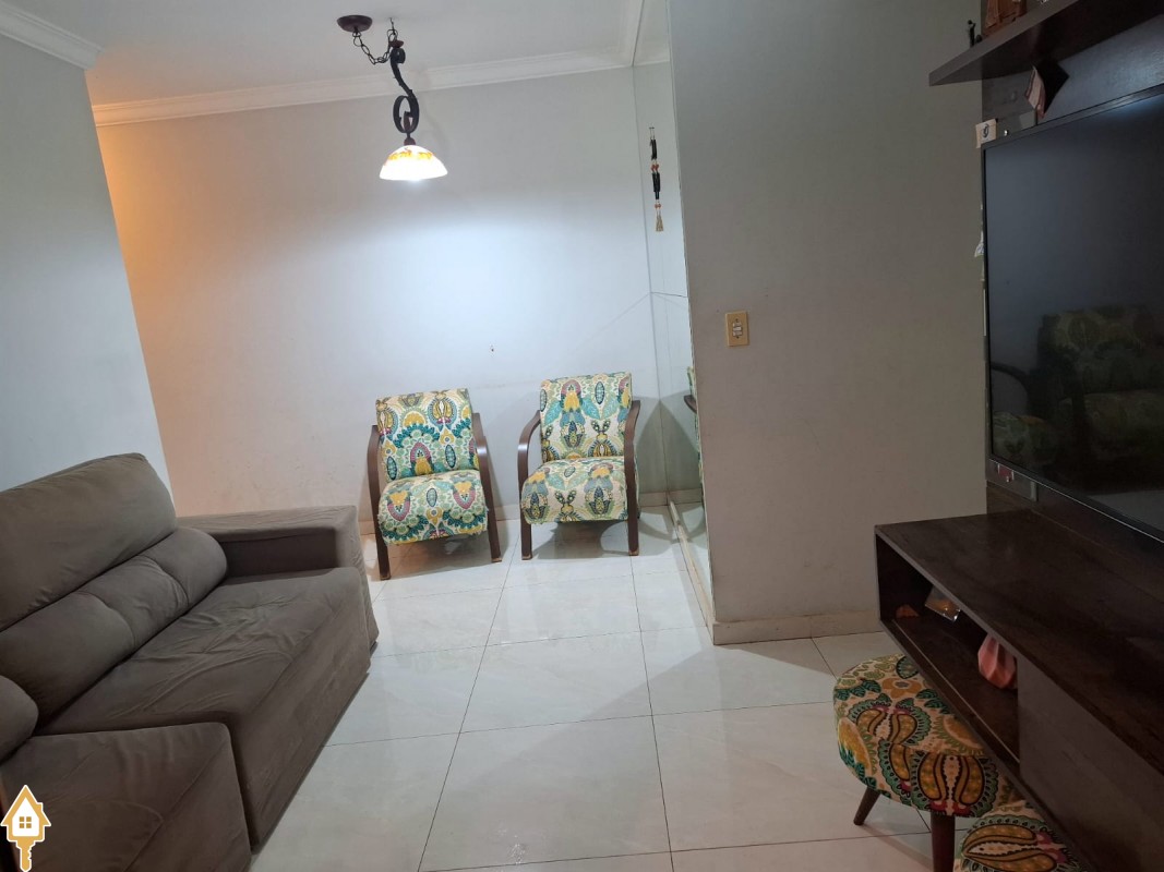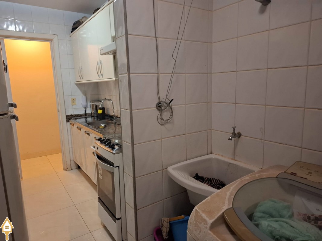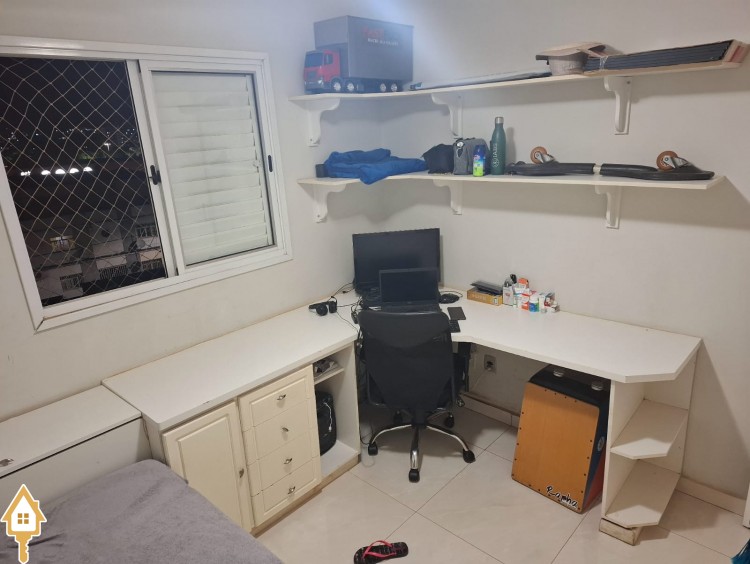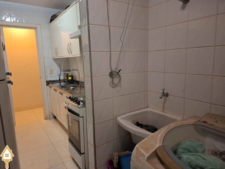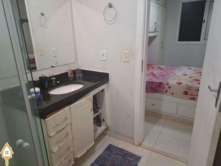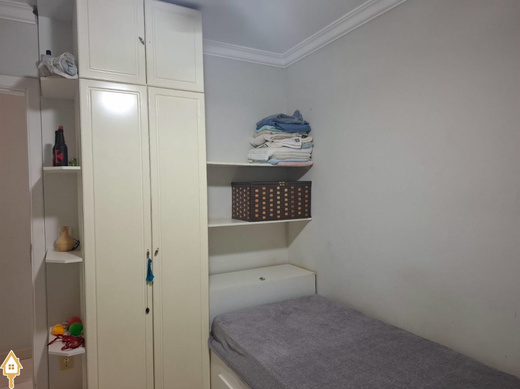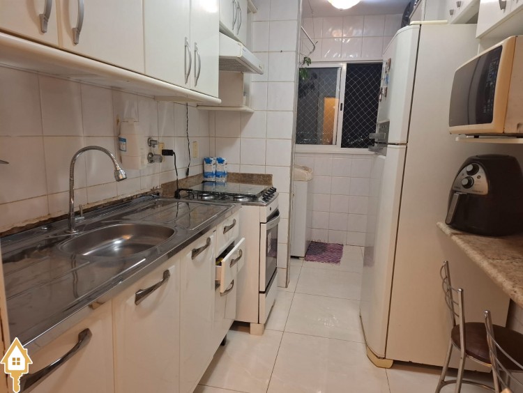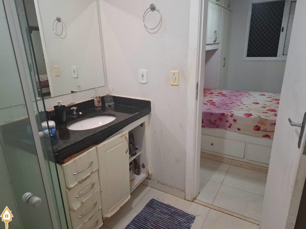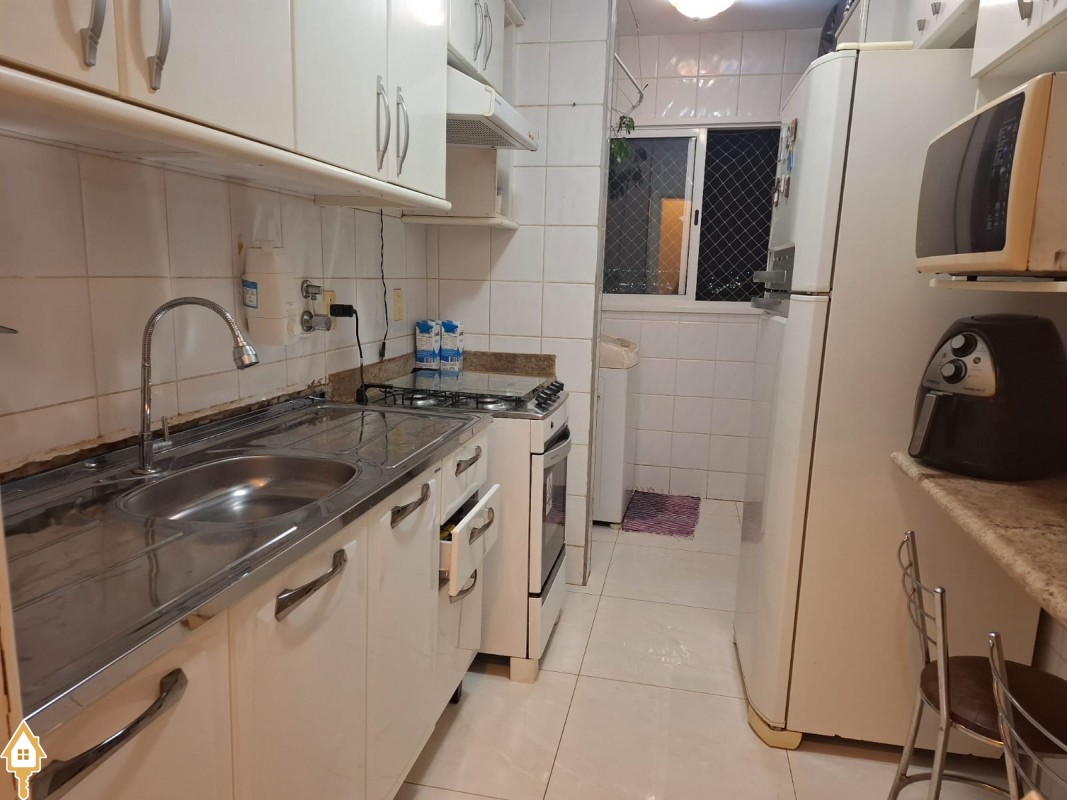 Apartamento com três quartos com armário ( sendo uma suíte com armários e blindex) , banheiro social com armário e blindex, Sala , Cozinha com armários, áre de serviço com armário,mais um banheriro . Uma vaga de Garagem .