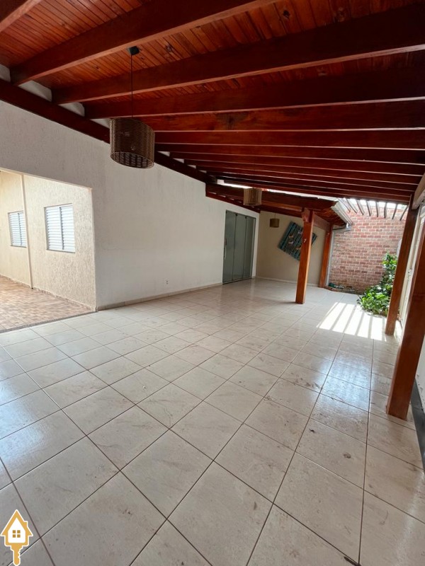 Casa com três quartos(sendo uma suíte), banheiro social, sala, cozinha com armários, Varanda com área de serviço mais um banheiro, possui garagem coberta