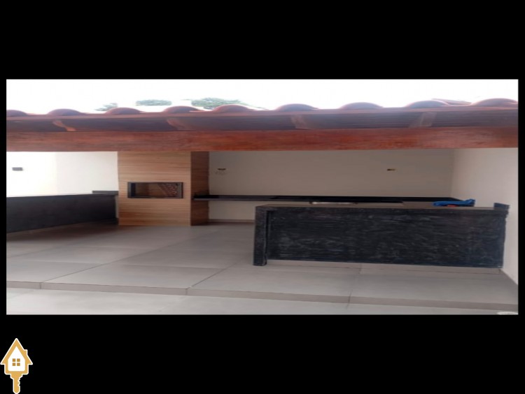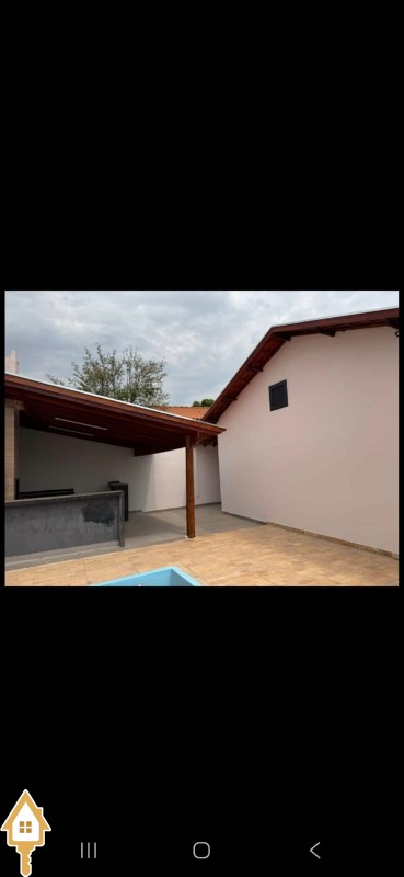 3 quartos sendo uma suíte, sala, cozinha, garagem coberta para 3 carros e cabe mais carros na área descoberta, área de lazer com churrasqueira, piscina e jardim