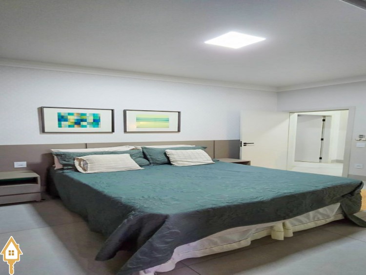 03 Suítes com armários planejados, ar condicionado, cortinas, painel de TV e cabeceira;