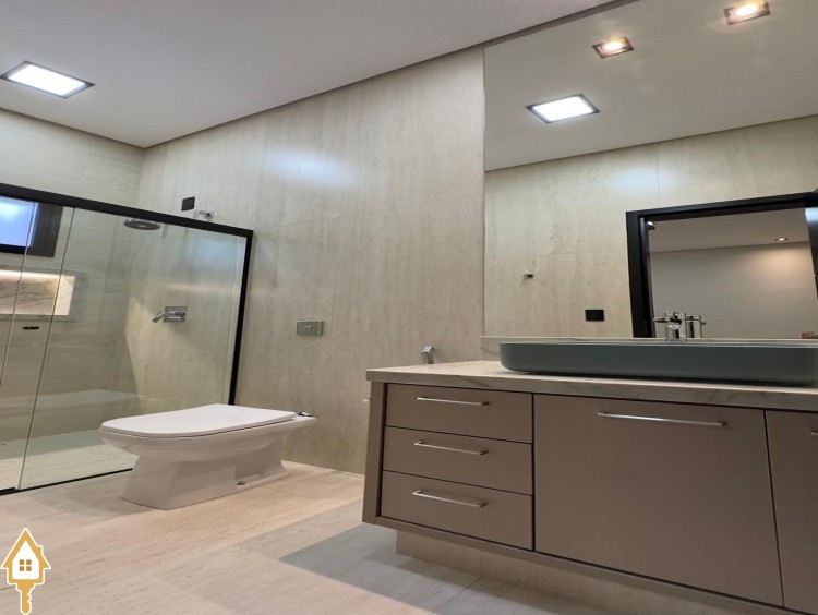 03 suítes espaçosas com closet e ar-condicionado, sendo que uma delas oferece o charme de uma porta automatizada com acesso direto ao jardim.