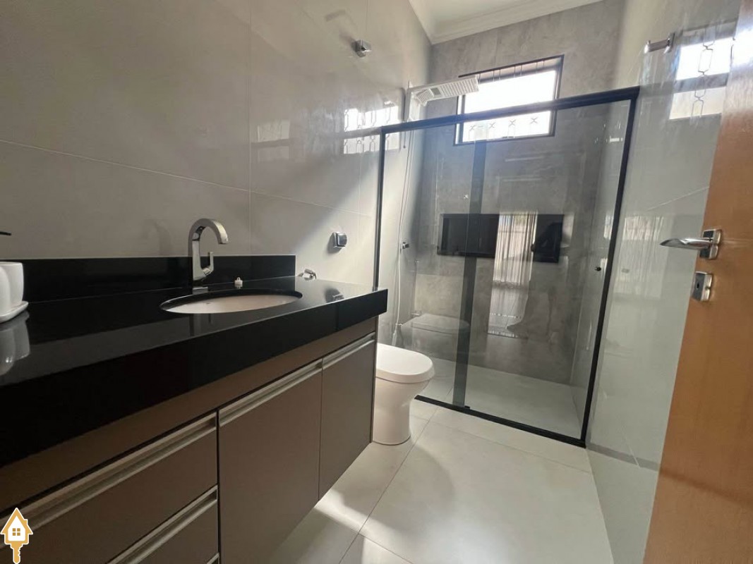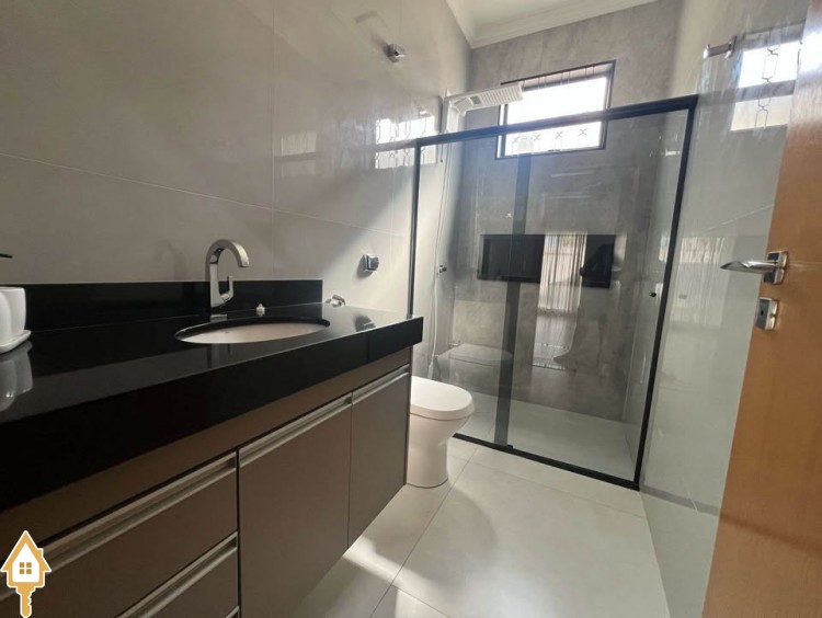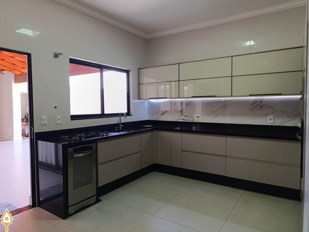 A casa ainda conta com fino acabamento, toda revestida em piso porcelanato, possui portão eletrônico, cerca elétrica, moldura em gesso e armários planejados.
