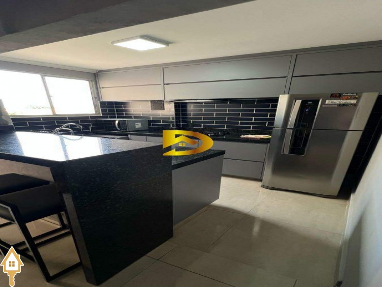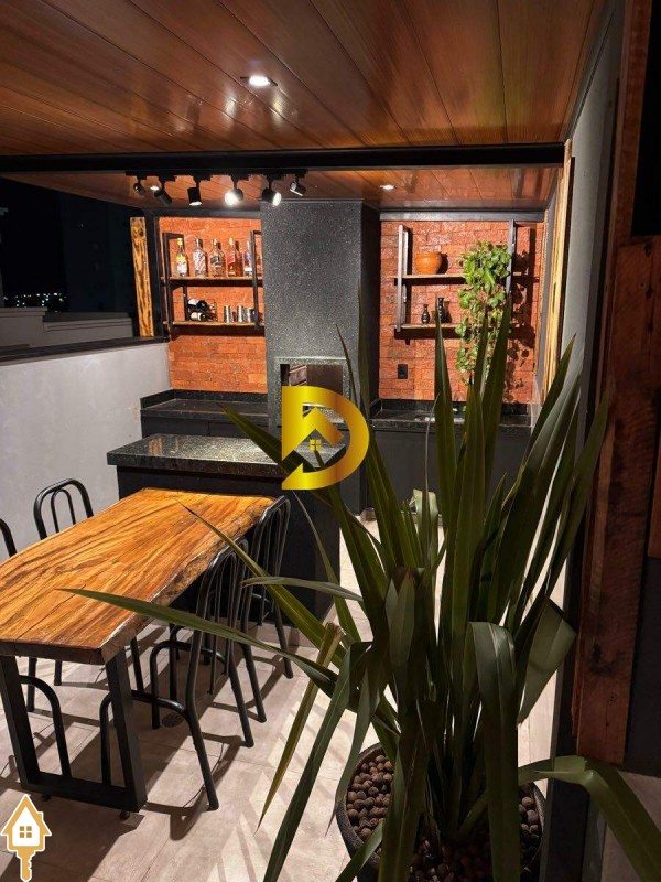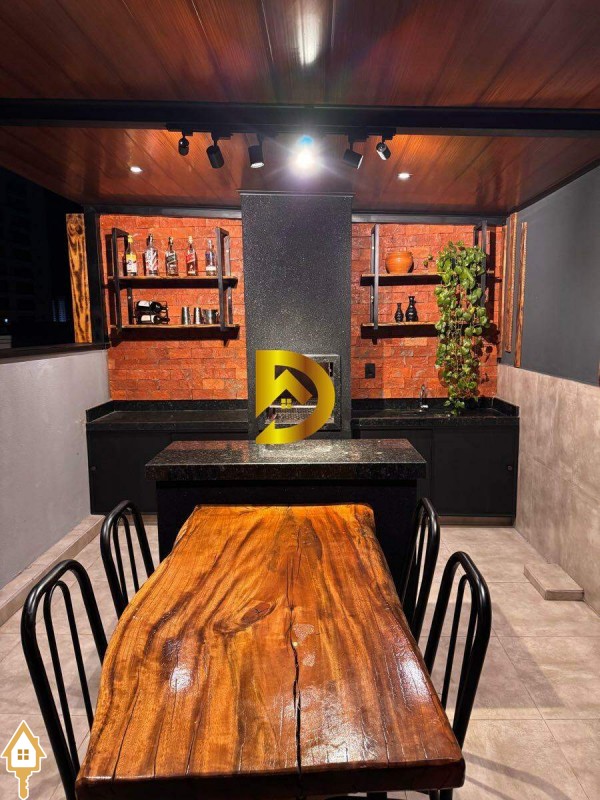 Piso superior: acabamento rústico/industrial, recém reformado, com balcões, Bia, prateleira, revestimentos, forro, armários, churrasqueira, tudo novos.