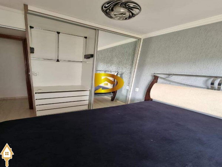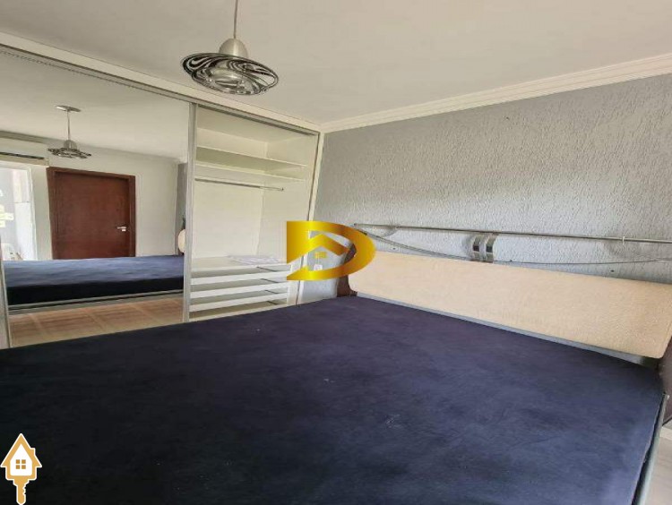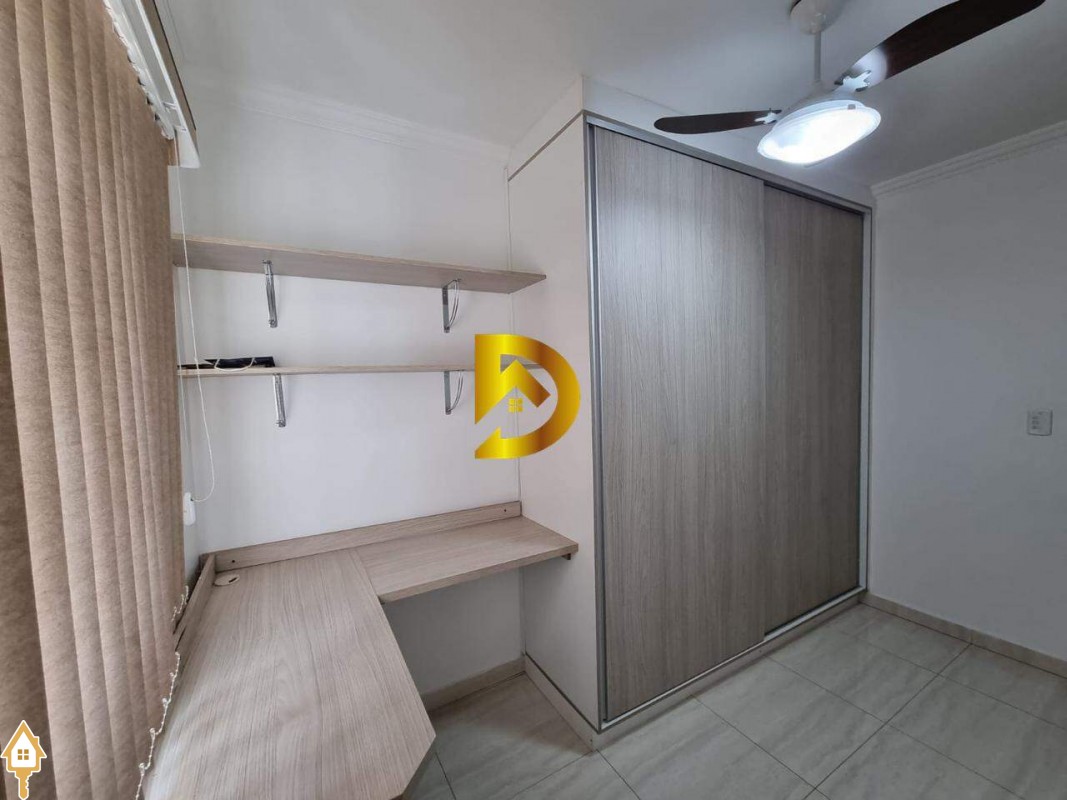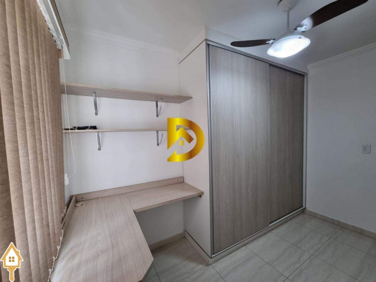 1 quarto com ventilador de teto, armário planejado com escrivaninha e prateleiras (ideal para estudo ou home office)