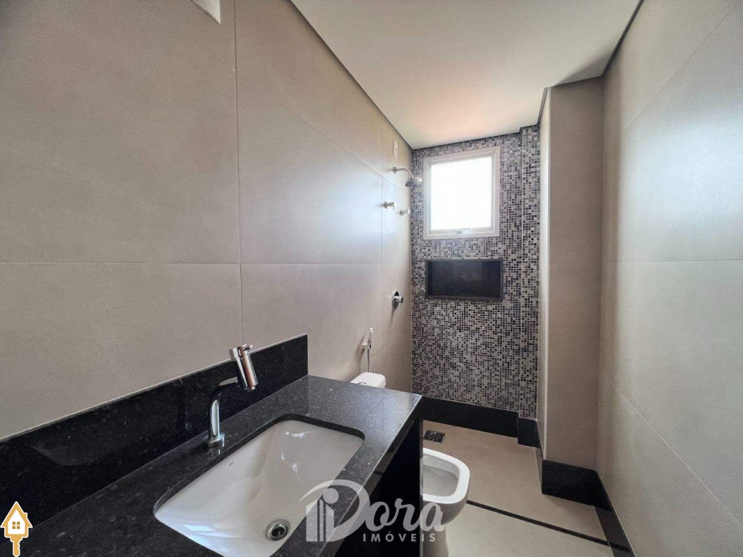 Belíssimo alto padrão, com 03 suítes sendo a master com espaço para closet, lavabo, sala para 03 ambientes, varanda gourmet com churrasqueira, cortina de vidro, cozinha, lavanderia, wc, despensa, 03 vagas de garagens com 01 box, área de lazer no condomínio com piscina aquecida, espaço gourmet com churrasqueira, academia, espaço kids , salão de festas, sauna, aquecedor (gás), água e gás com medidor individual. Obs: Piso Porto Belo ,aquecedor (água quente nos chuveiros e torneiras), churrasqueira com isolante térmico interno, metais de primeira qualidade, todo apartamento rebaixado com gesso, instalação de som interno na sala, todas as bancadas granito São Gabriel na cor preta, entrada para ar condicionado em todo o apartamento,.