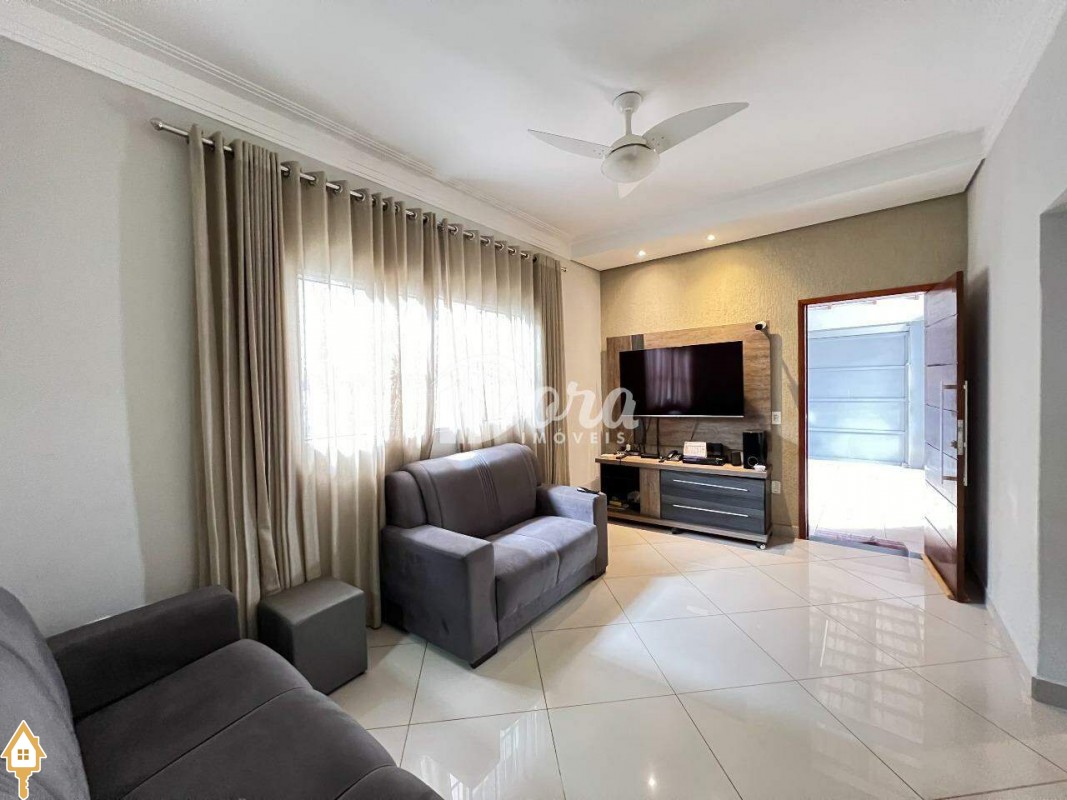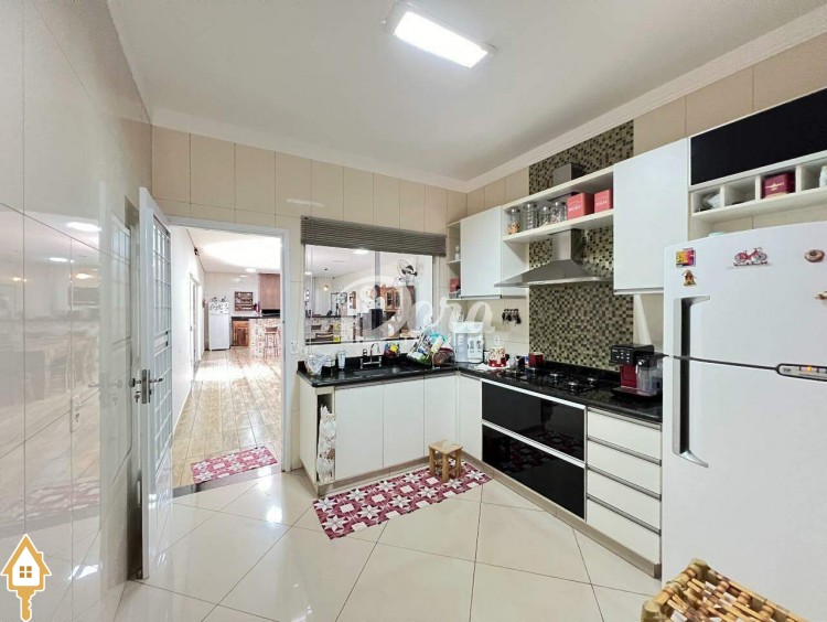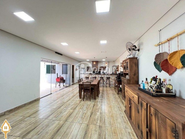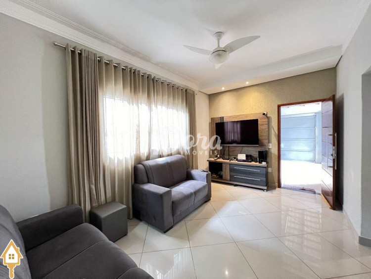 Casa à venda no Bairro Jardim Nenê Gomes em Uberaba, com 03 quartos sendo 01 suíte com ar condicionado (somente a suíte com planejados), cozinha funcional integrada e toda planejada com cooktop e coifa, sala de visita, banheiro social, varanda gourmet com churrasqueira e cooktop, projetada para proporcionar o máximo de conforto e bem estar para a sua família, despensa, banheiro na área externa, canil com depósito, energia fotovoltaica instalada, 03 vagas de garagem.