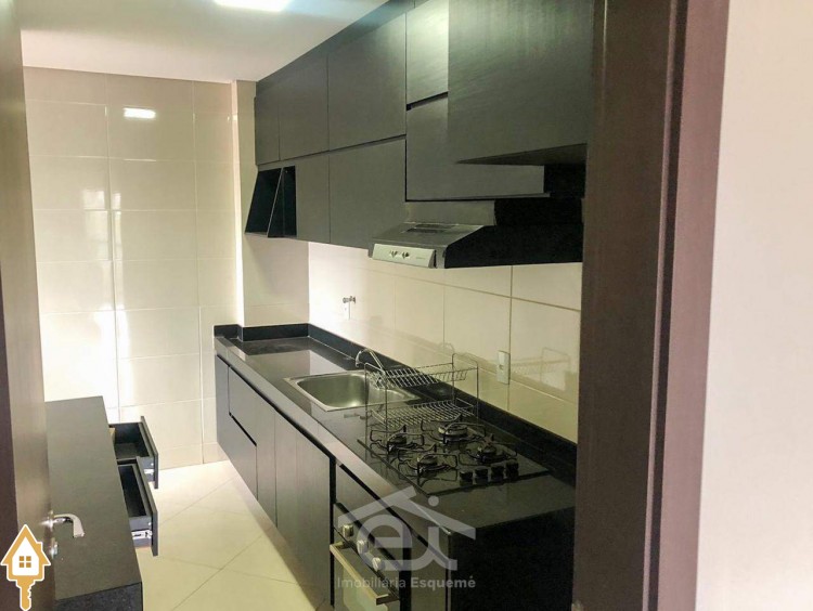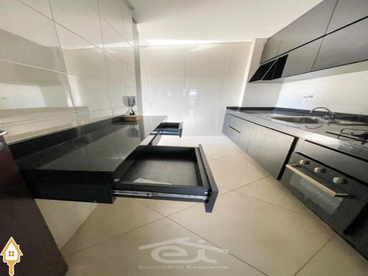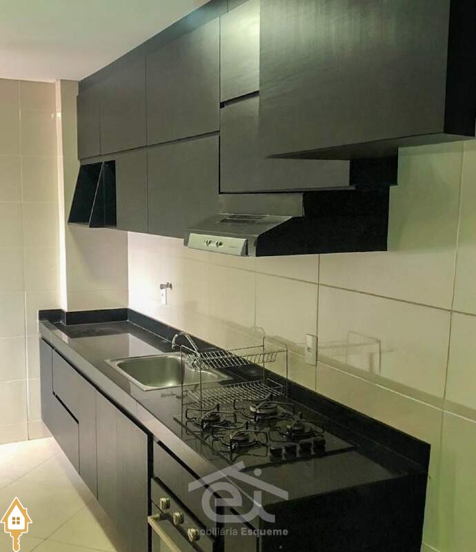 - Cozinha planejada com armários, cooktop, forno e depurador/exaustor