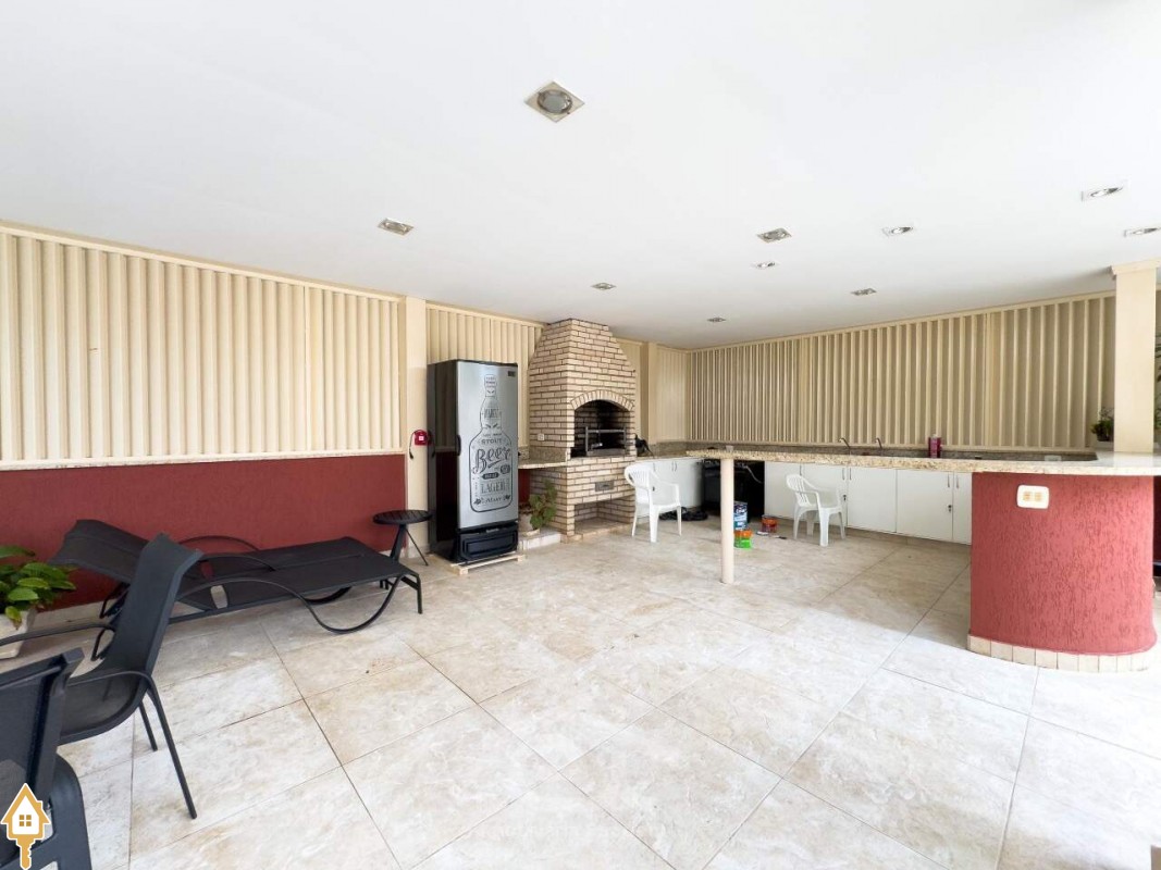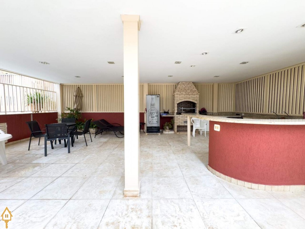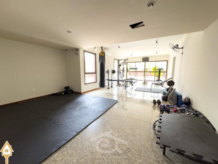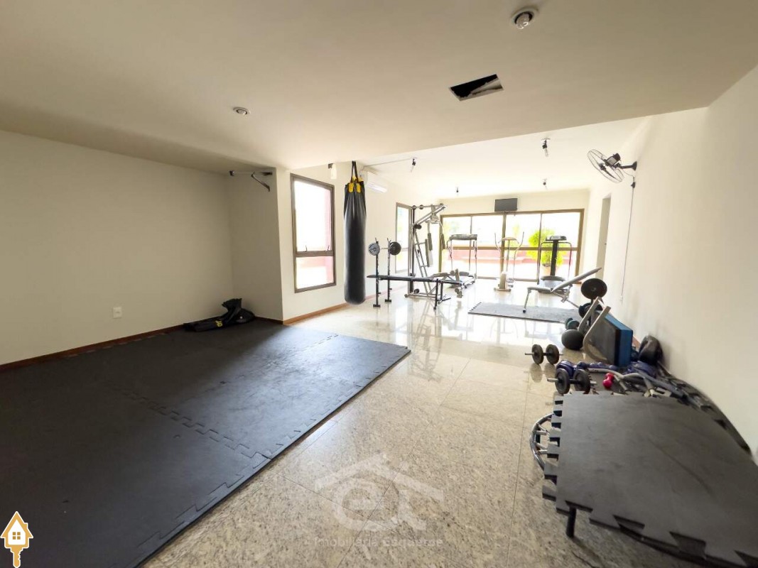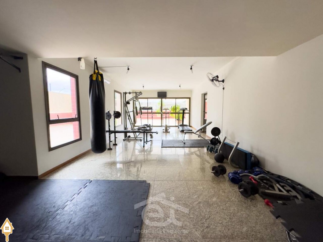 Condomínio com área de lazer completa, incluindo academia, área gourmet, sauna, piscina e salão de festas.