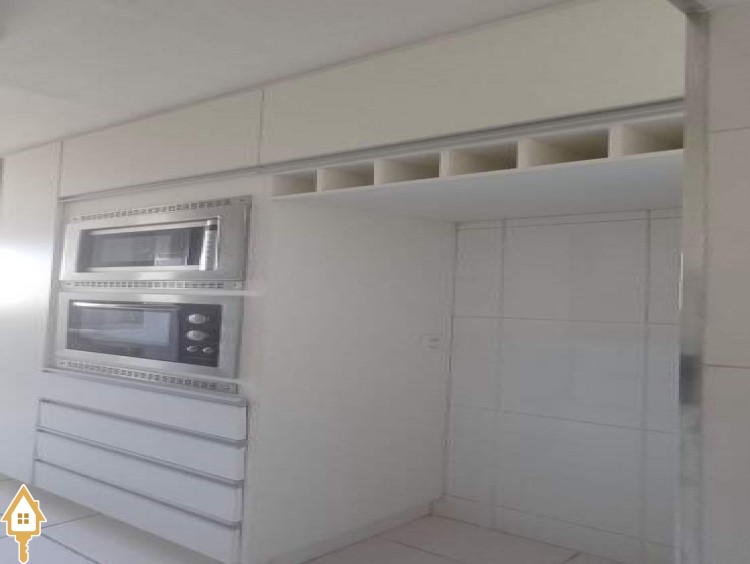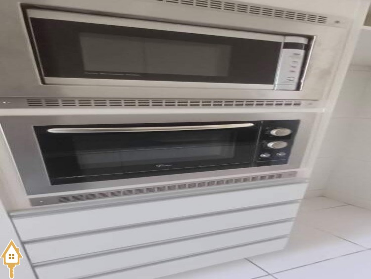- Cozinha planejada com fogão cooktop, forno micro-ondas e forno elétrico
