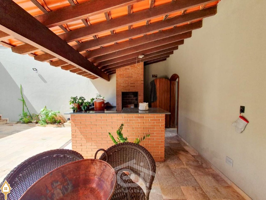 - Varanda gourmet ampla com churrasqueira a carvão e balcões.