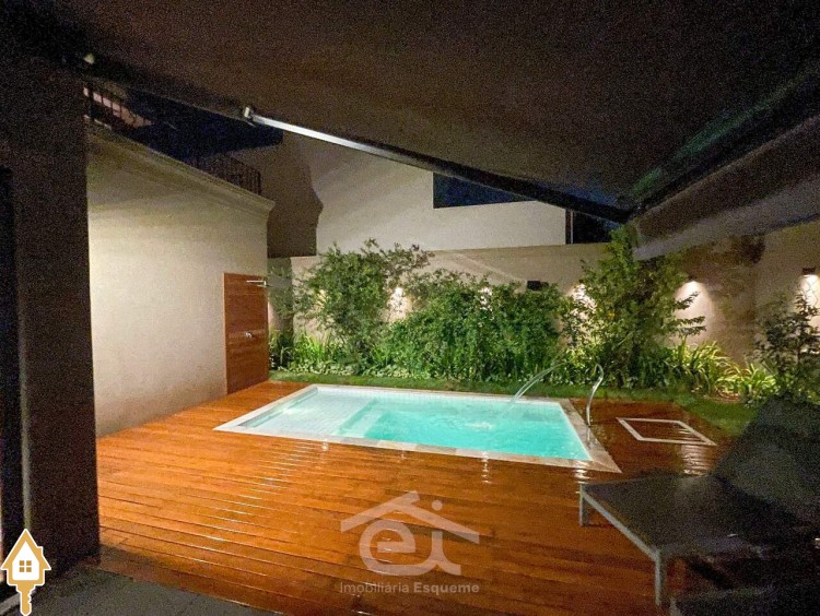 - Deck de madeira e piscina com hidro, ducha aquecida, cascata e iluminação