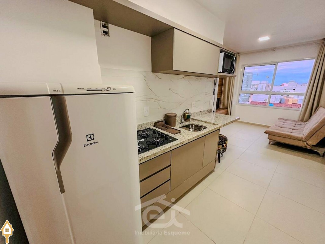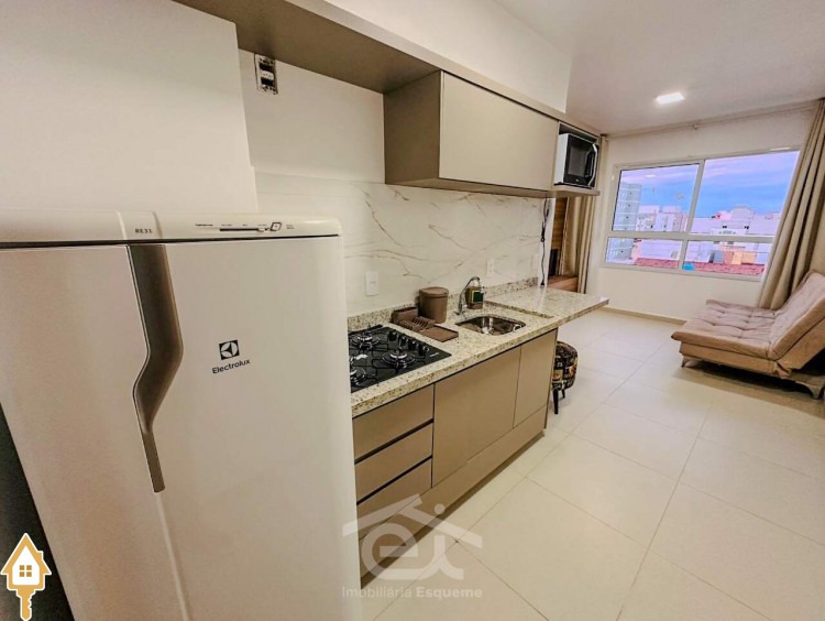 - Cozinha planejada completa com geladeira, micro-ondas e cooktop;