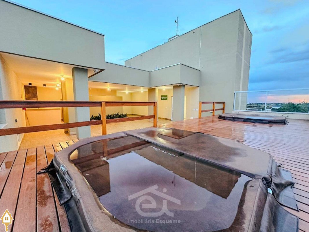 O condomínio conta com rooftop com churrasqueira, jacuzzi, lavanderia express e portaria, oferecendo praticidade e conforto no dia a dia.