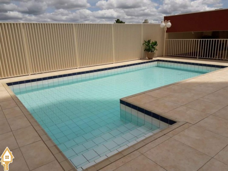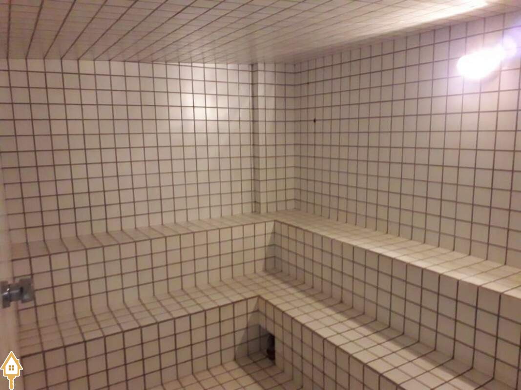 Condomínio com área de lazer completa, incluindo academia, área gourmet, sauna, piscina e salão de festas.