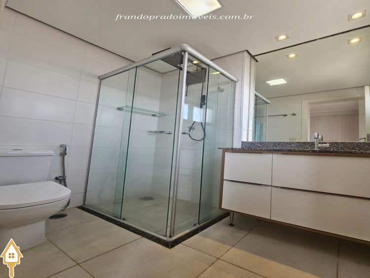 Este apartamento conta com três suítes, todas com armários planejados que otimizam o espaço e mantêm tudo em ordem.