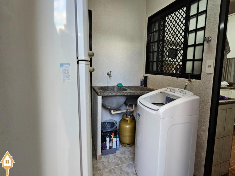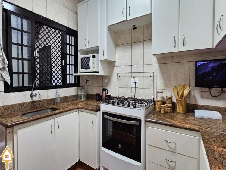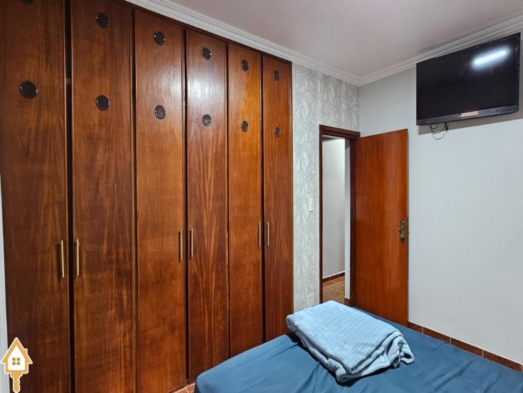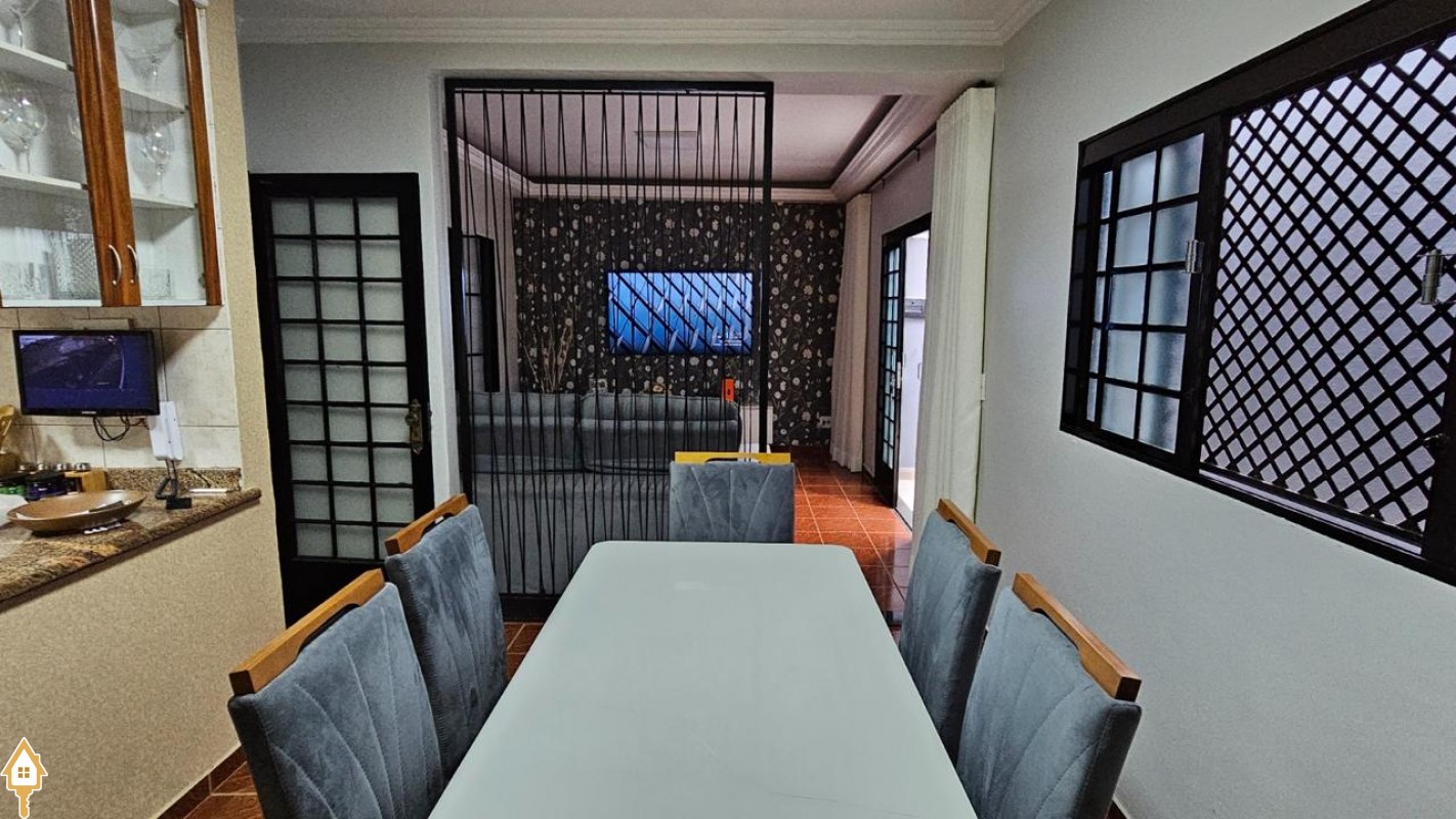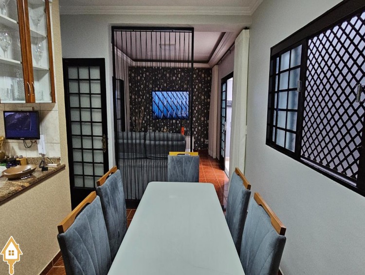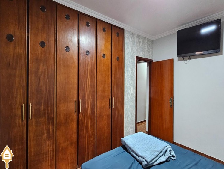 Com ambientes bem cuidados, oferece sala para dois ambientes, cozinha planejada, roupeiro no corredor e três quartos confortáveis — todos com armários.