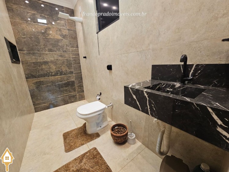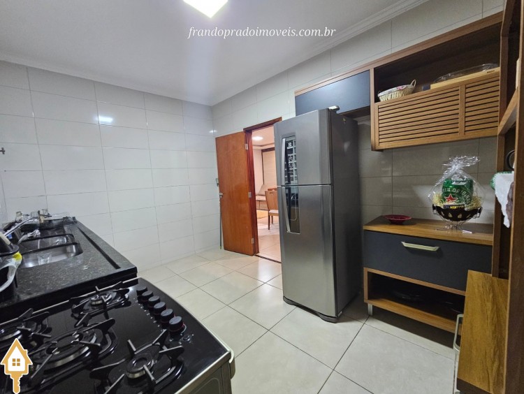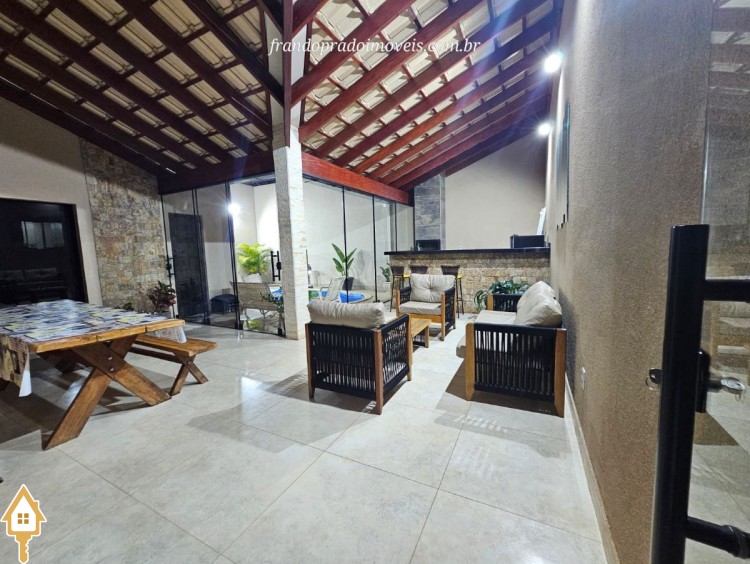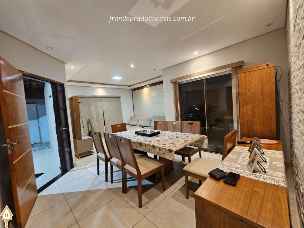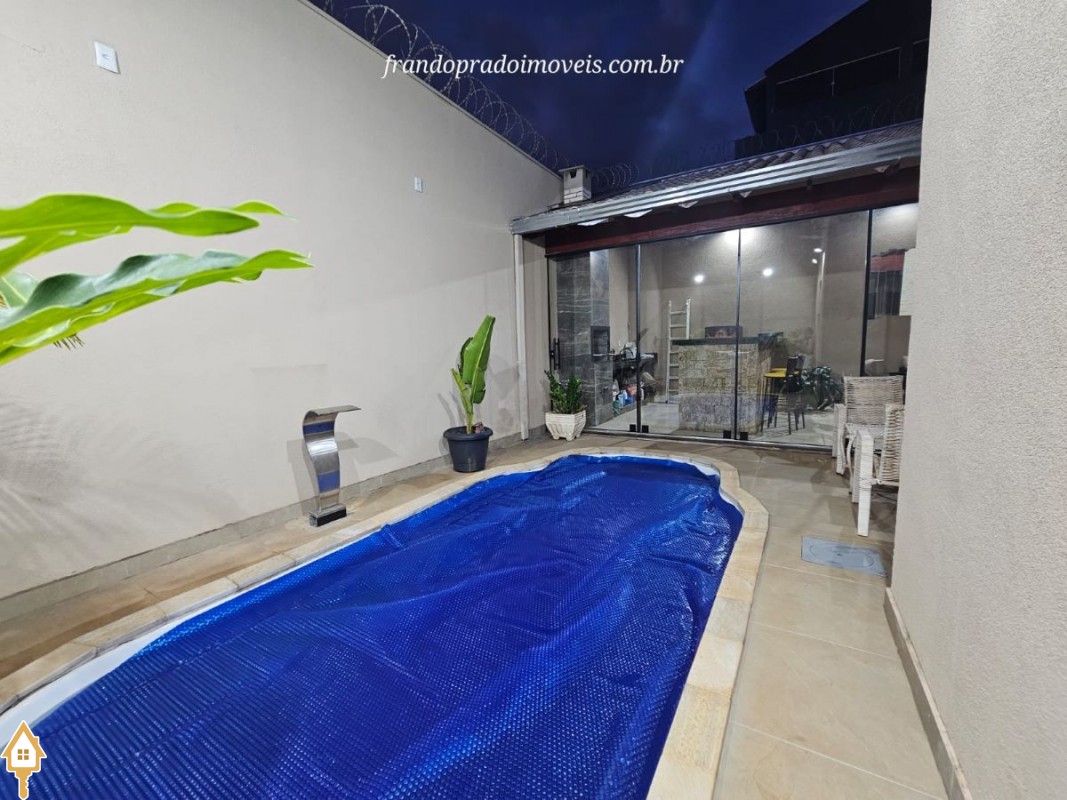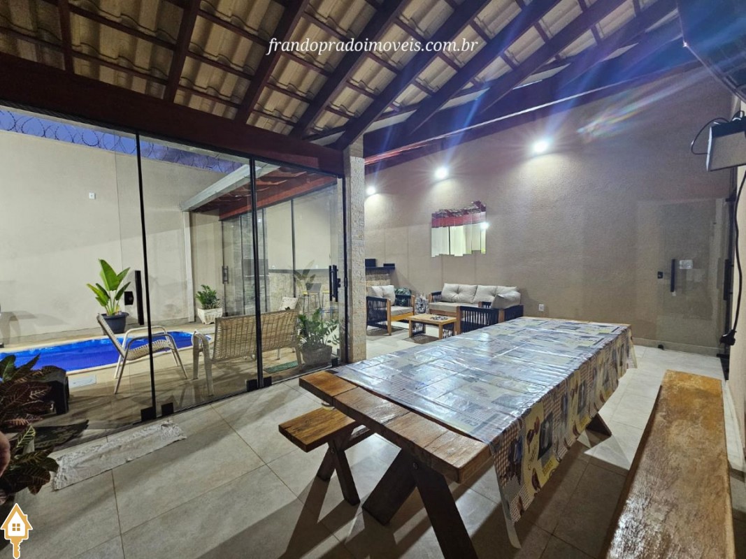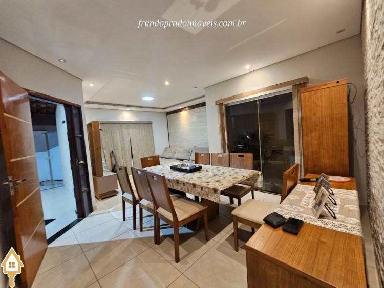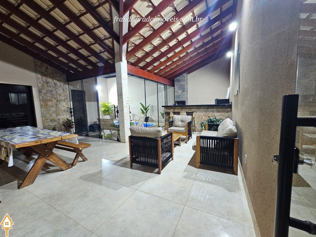 Casa à venda no Residencial Estados Unidos, pronta para receber novos moradores. Conta com varanda gourmet fechada em vidro, banheiro de apoio e estúdio. A área social oferece sala para dois ambientes, cozinha com armários e corredores laterais que favorecem ventilação e iluminação natural.