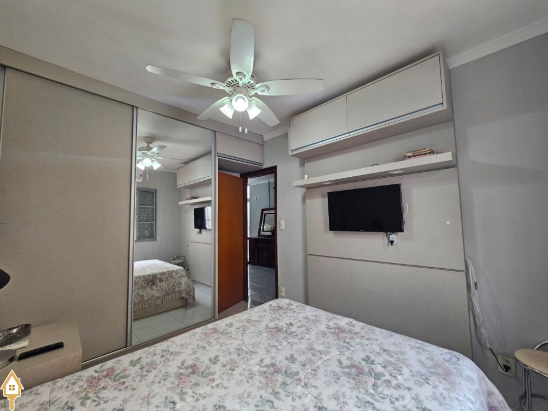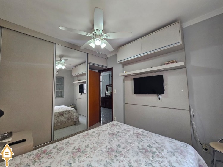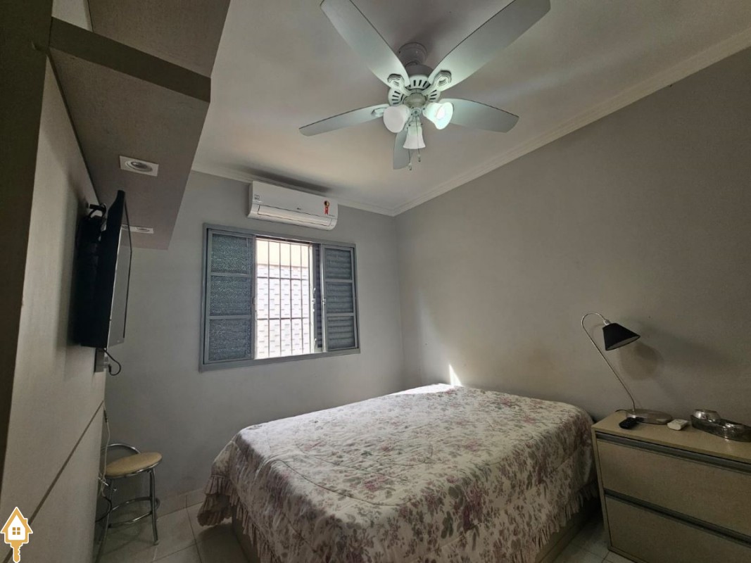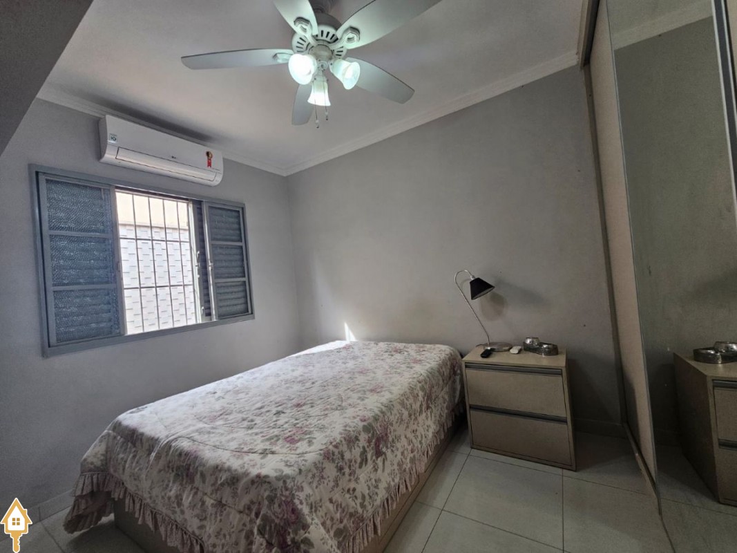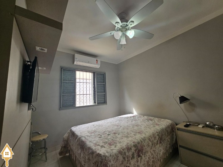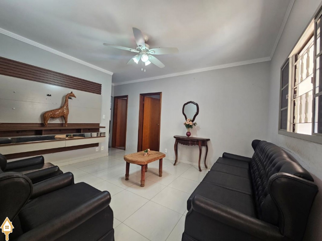 O imóvel dispõe ainda de três vagas de garagem, sendo uma coberta, além de ventiladores de teto, ar-condicionado e armários planejados em um dos quartos, agregando praticidade e conforto.