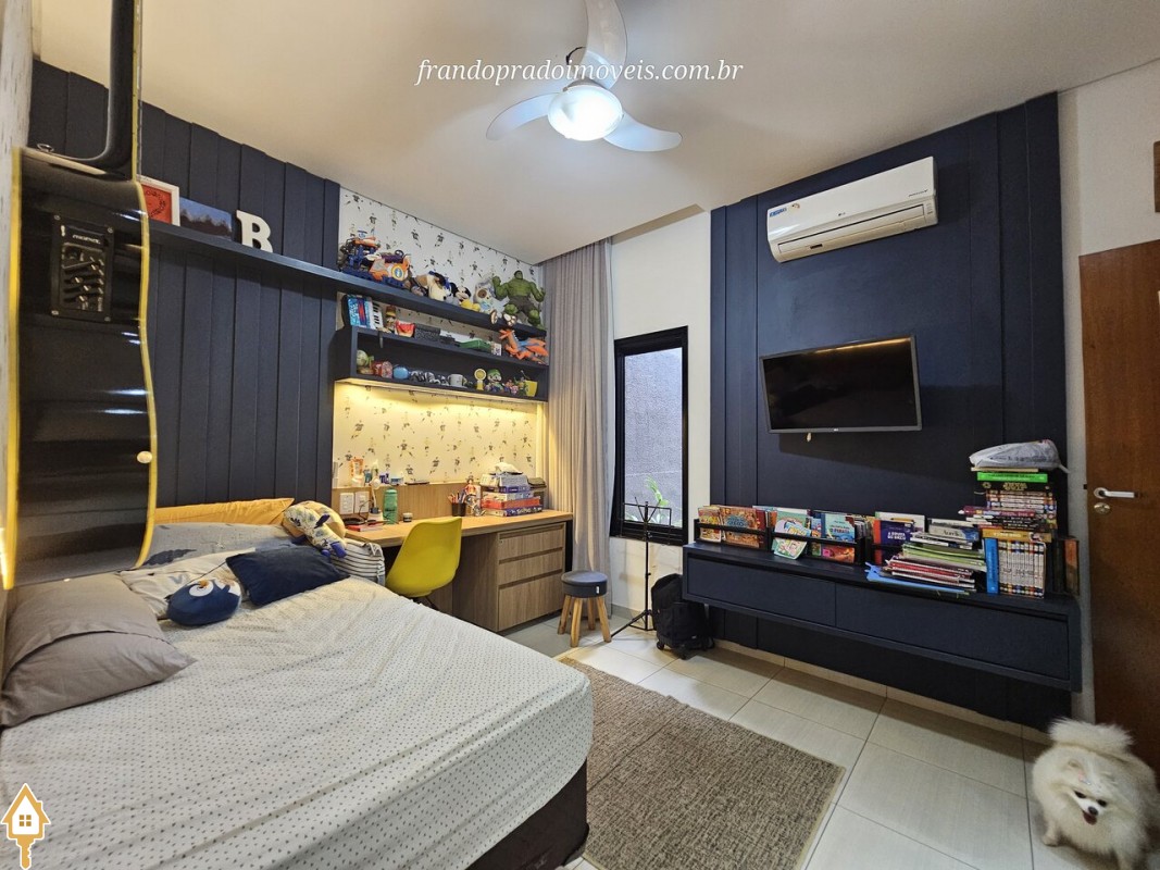 Na área íntima, são três quartos amplos, sendo uma suíte máster com closet e hidromassagem.