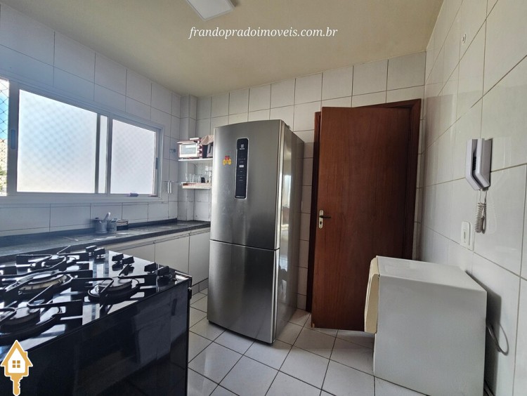 Apartamento com sala generosa para três ambientes, integrada à sacada, valorizando a área social e a convivência. A cozinha é planejada, com acesso à lavanderia com banheiro de apoio e entrada de serviço, garantindo praticidade no dia a dia.