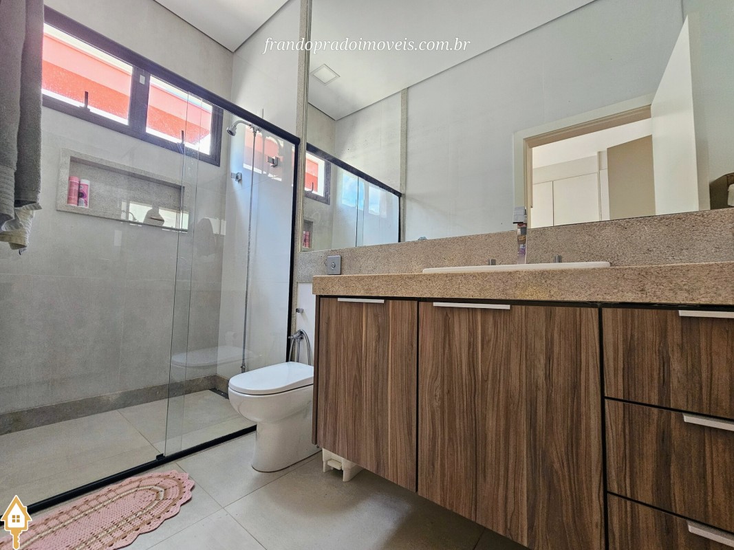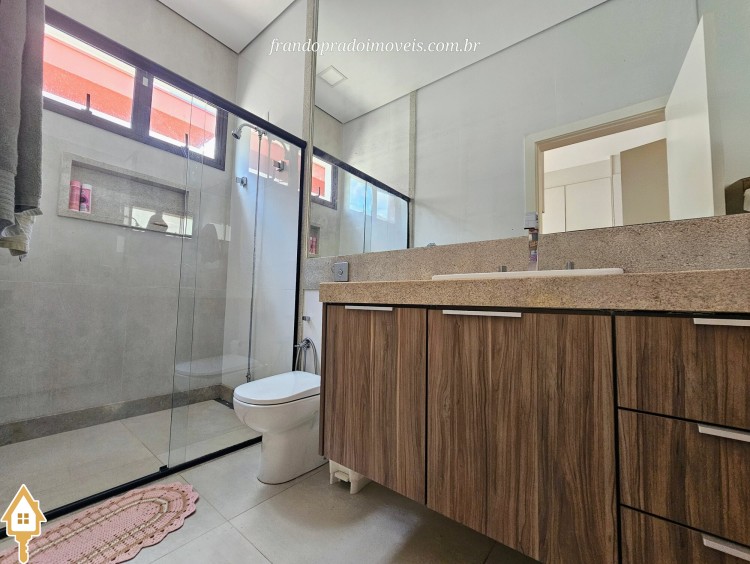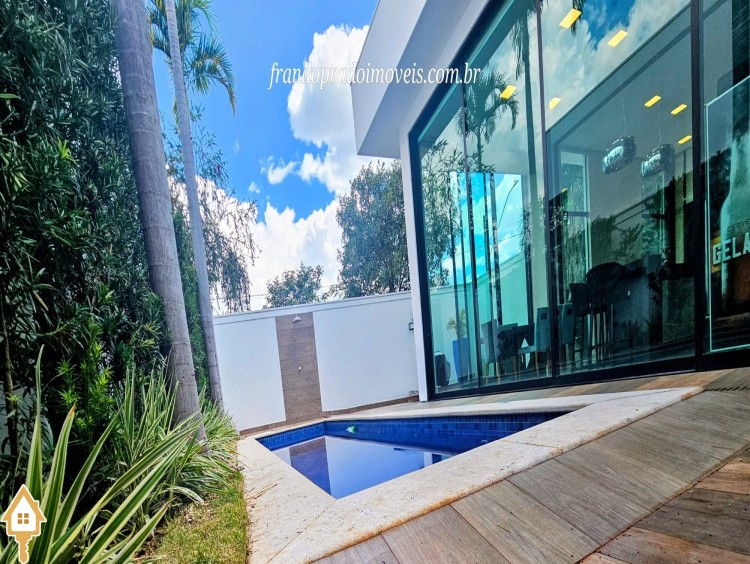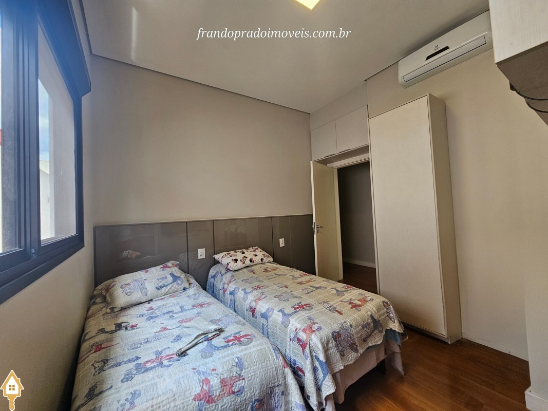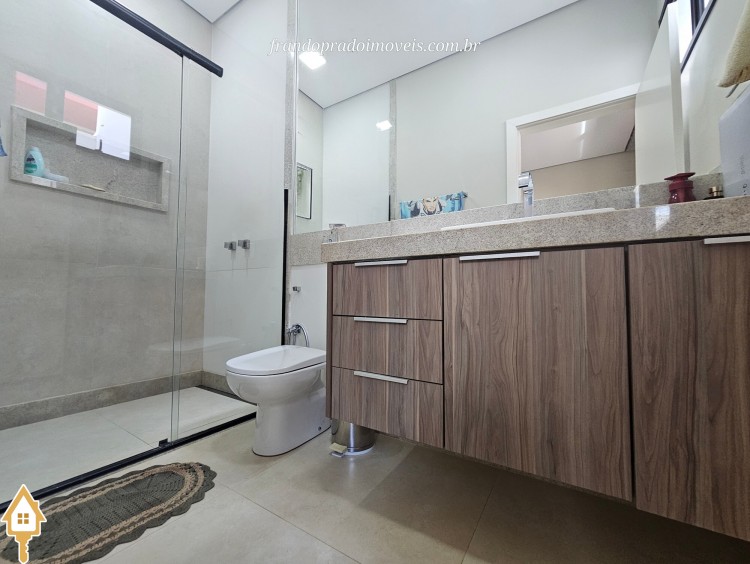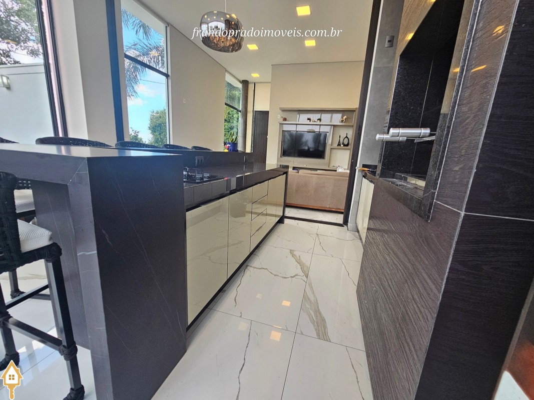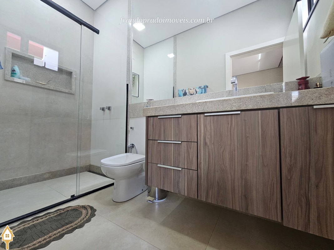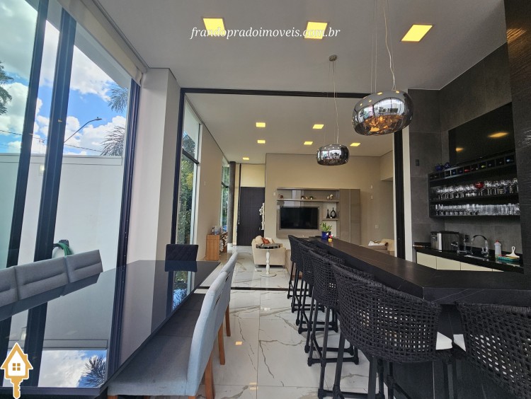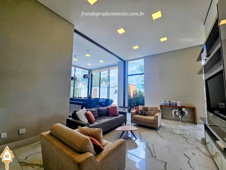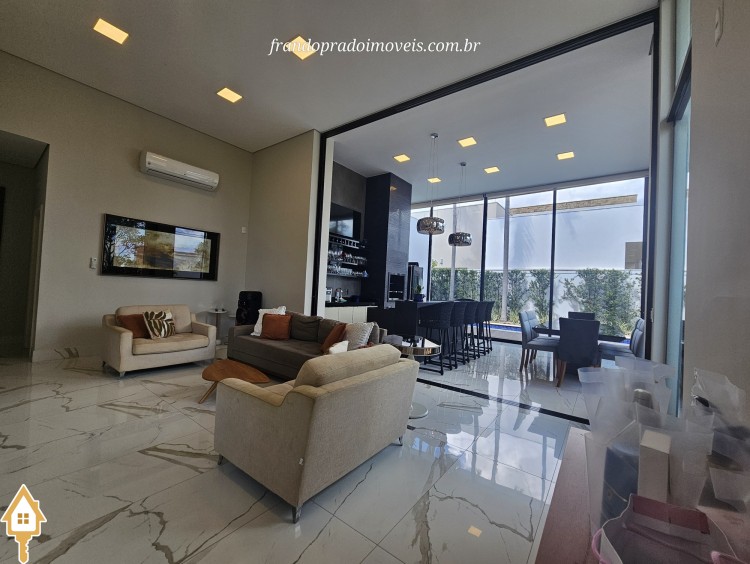 Casa à venda em condomínio em Uberaba. Imóvel com projeto funcional e ambientes integrados, oferecendo sala para dois ambientes conectada à varanda gourmet por portas-cortina, permitindo integração com a área externa e a piscina aquecida. Possui três suítes privativas, cozinha planejada, banheiro de apoio, área de serviço com entrada independente e ambientes planejados. Conta ainda com ar-condicionado nos quartos e sala, energia fotovoltaica e projeto de iluminação. Boa ventilação e iluminação naturais e posição privilegiada, sem vizinho em frente.