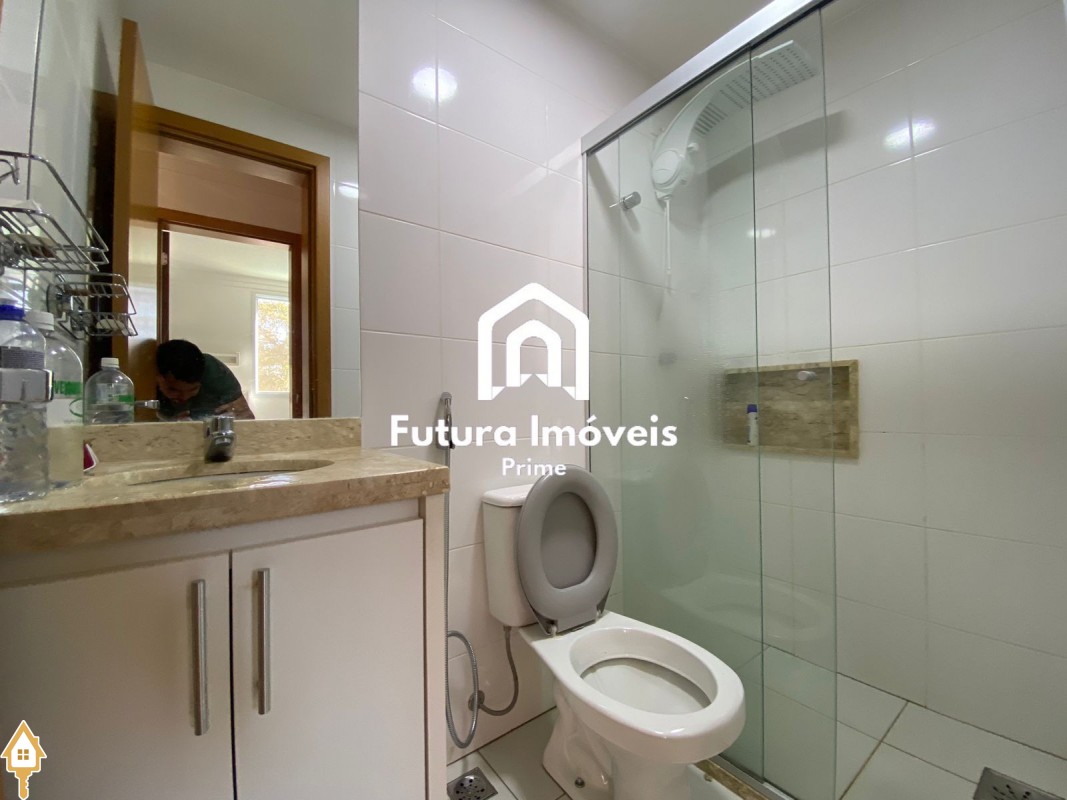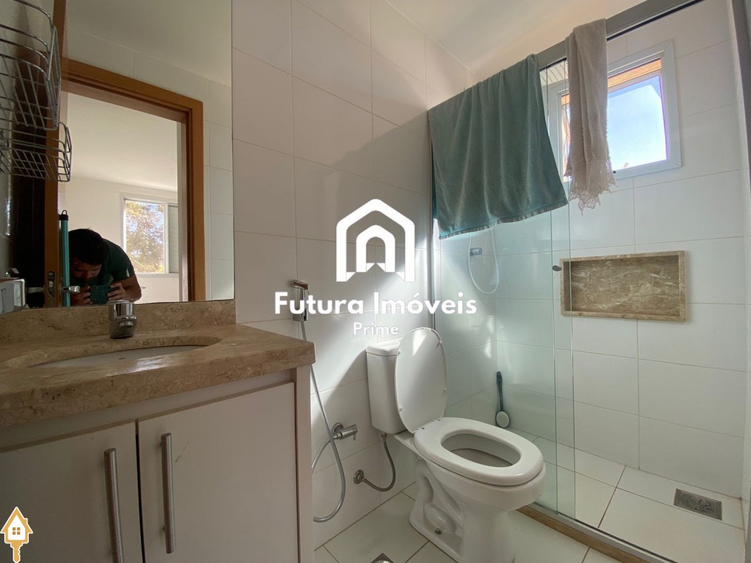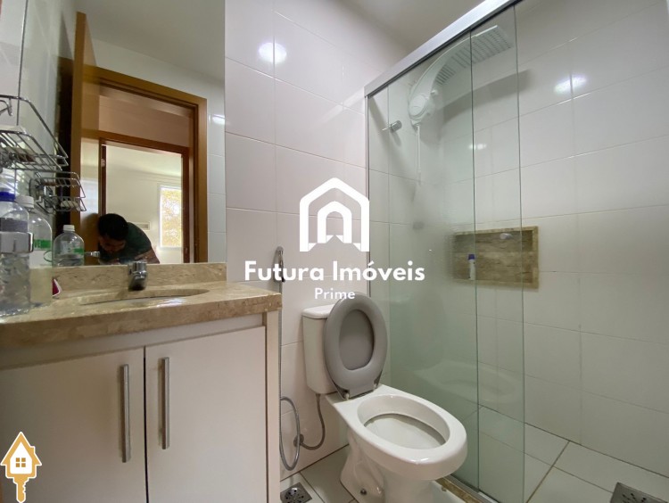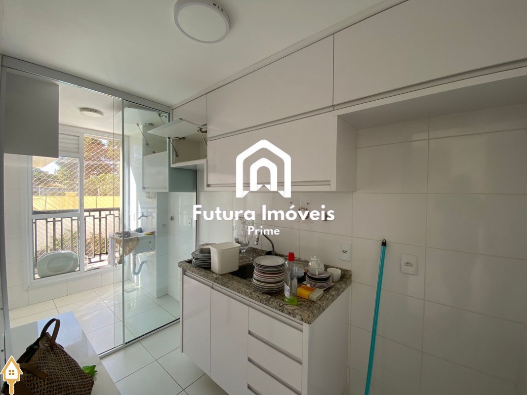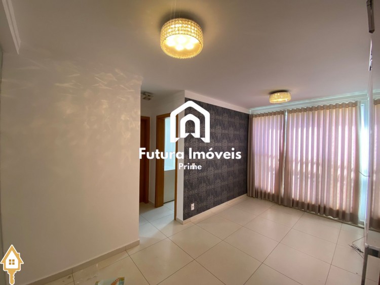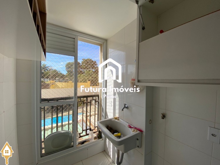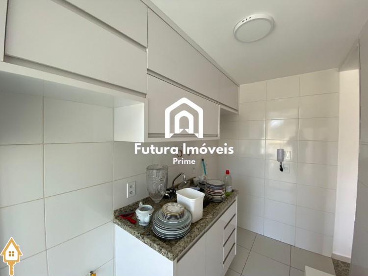 -Sala ampla, 02 ambientes; -Cozinha toda revestida com armários; -Área de serviço com armários; -02 quartos sendo 01 suíte, todos com armários; -Banheiro social; -01 vaga de garagem coberta e 01 vaga externa; -Condomínio com área goumert com piscina e churrasqueira, salão de festas, playground e sauna;